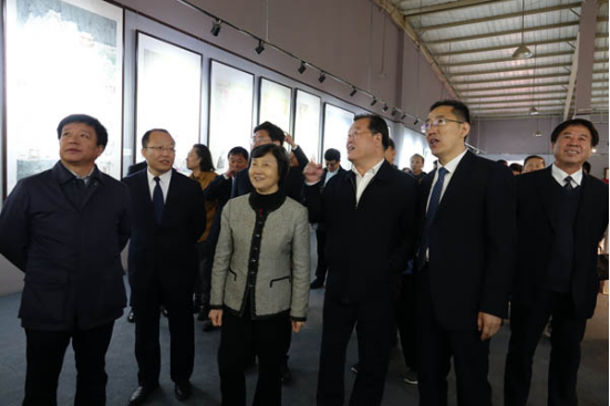 開幕式后,與會(huì)領(lǐng)導(dǎo)人員參觀了“清風(fēng)竹韻·曲水流觴”全國(guó)美術(shù)作品展 杜旭/攝