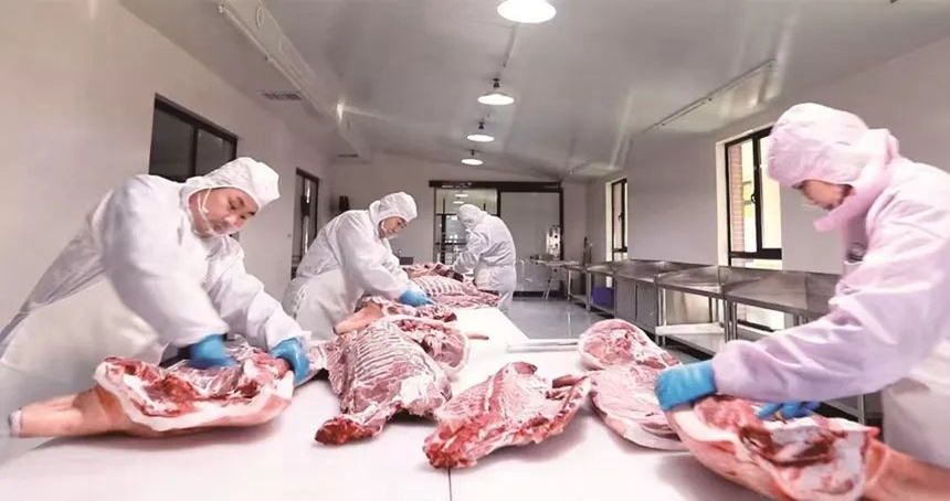 “水果豬肉”分割加工。黃建 攝