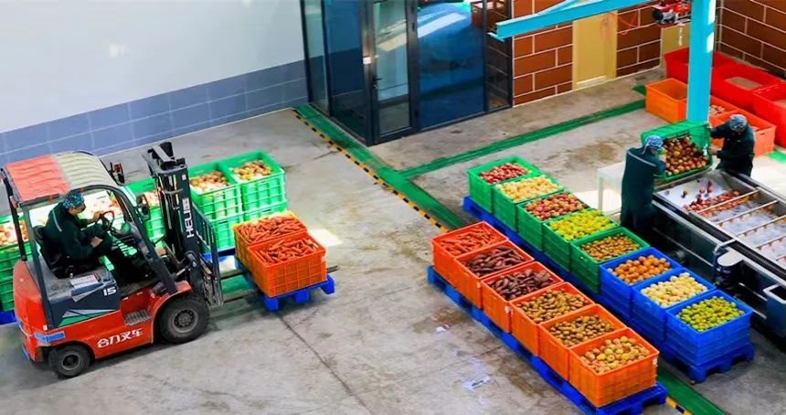 運輸、清洗水果蔬菜做成飼料。黃建 攝