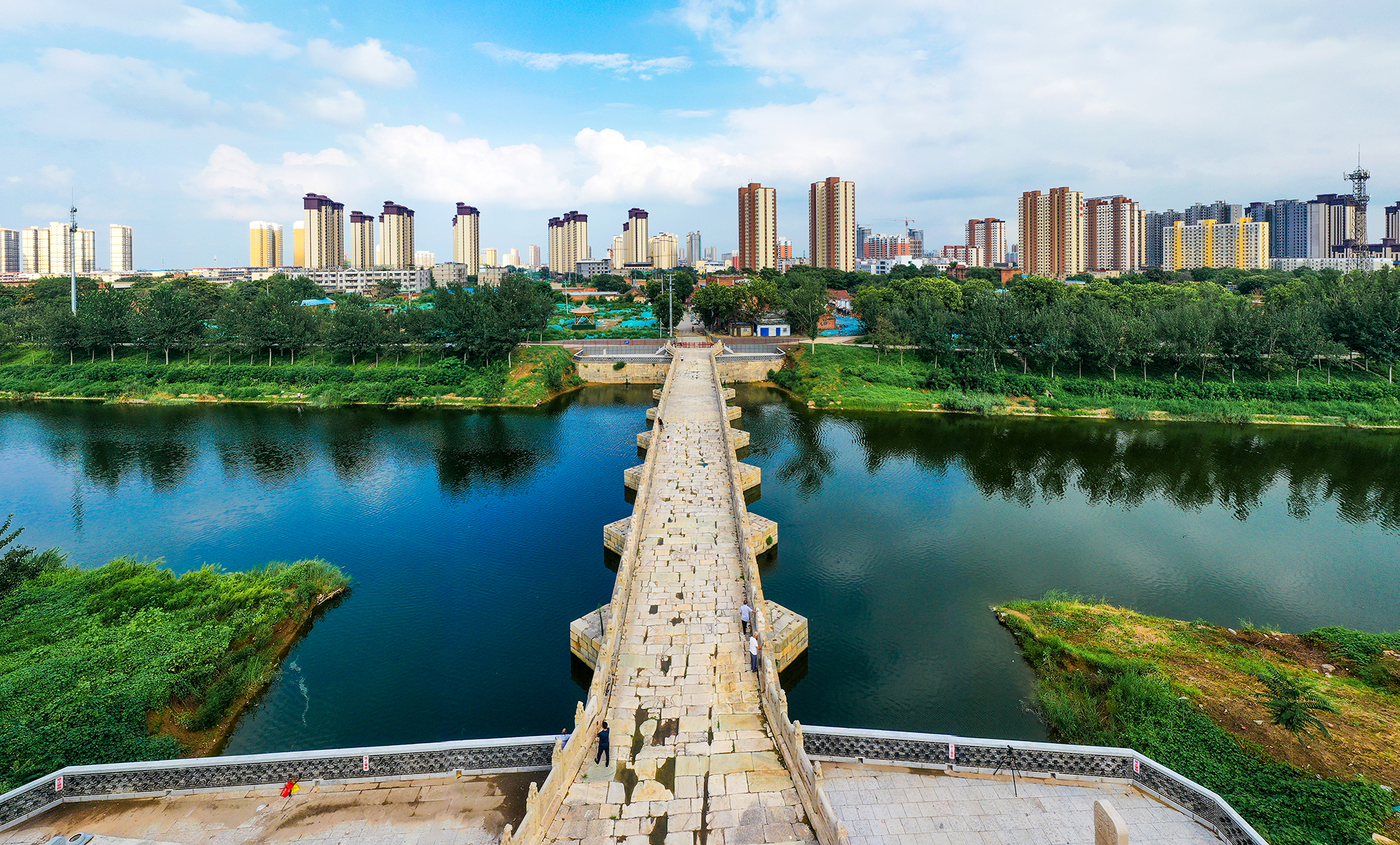 安濟橋是一座橫跨滏陽河的七孔連拱石橋。橋長116米,寬7.5米,東西走向,遠遠望去,猶如一條飄落在滏陽河面的白色玉帶。