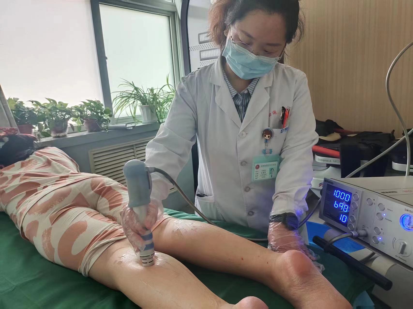 谷海钘醫生給函函做放射式沖擊波治療。