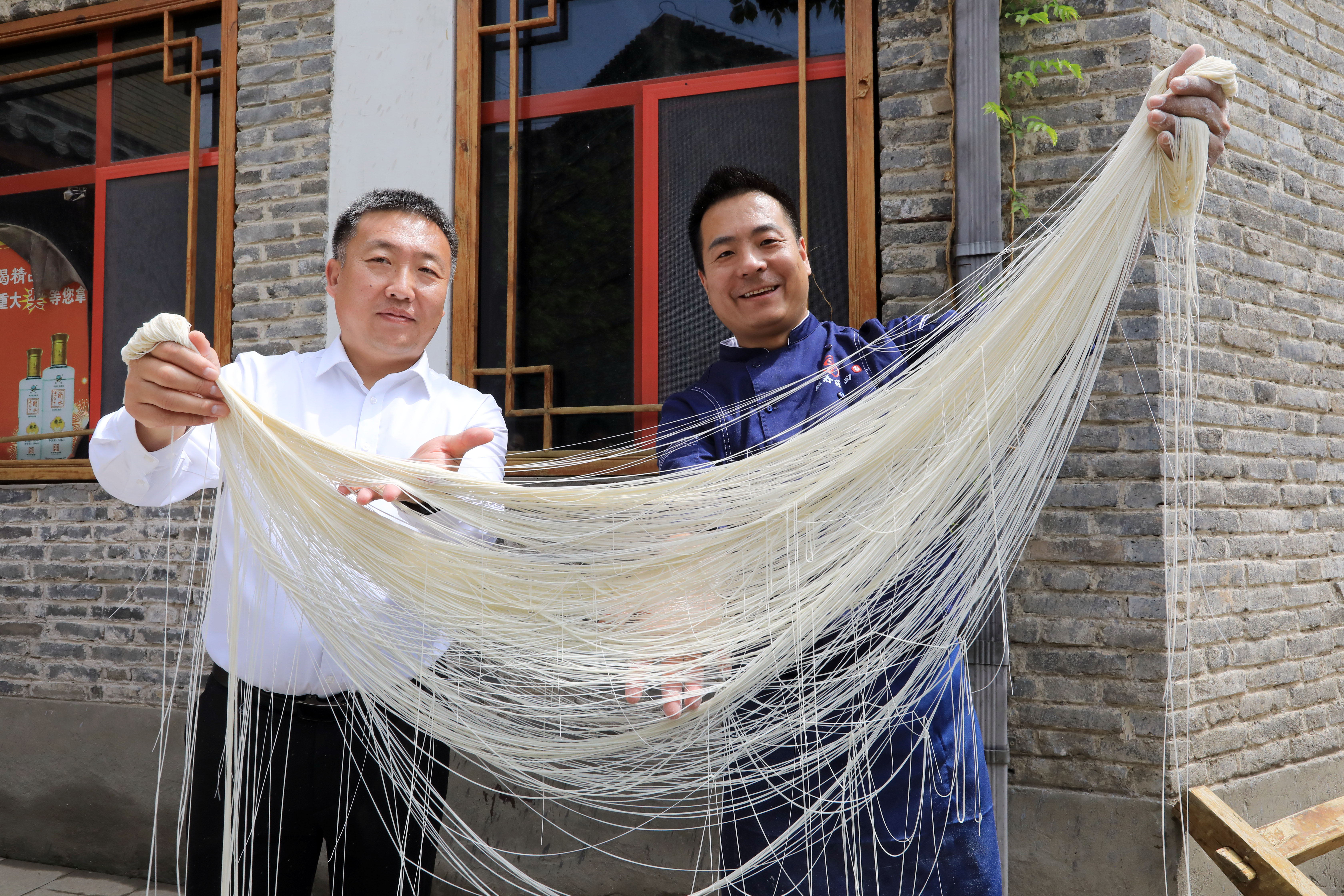 這方表演作罷,那方精彩繼續。開幕式后,在饒邑古城內,吉尼斯世界紀錄保持者、中華拉面王——吳斌大師現場表演如何抻出世界上最細的金絲雜面,精湛的技藝令觀眾連連贊嘆,大飽眼福。