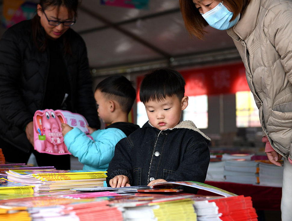 展臺上的圖書吸引了小讀者的關注。崔賢飛 攝