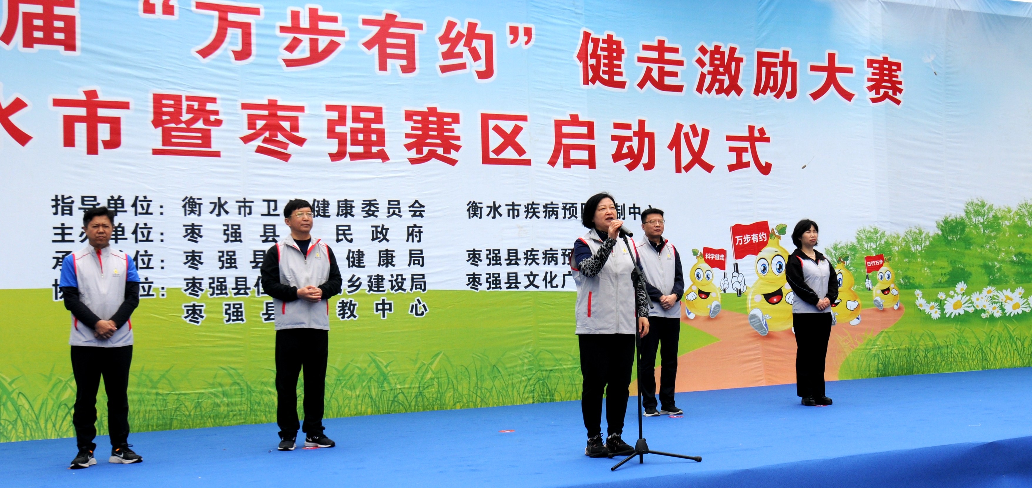5月5日,由衡水市衛健委、衡水市疾控中心指導,棗強縣人民政府主辦的2023年全國第八屆“萬步有約” 健走激勵大賽衡水市暨棗強賽區啟動儀式在棗強縣移民文化園廣場舉行。來自全市11個區縣的參賽代表等共計700余人參加啟動儀式。