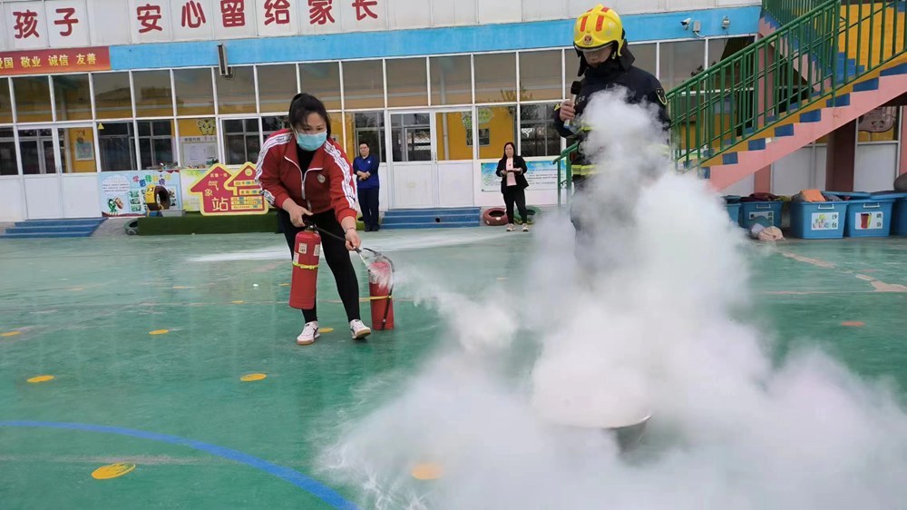 消防救援人員為孩子們講解了消防安全知識和消防車隨車器材裝備,指導教師學習滅火器的正確使用方法,引導師生有序進行了消防安全逃生演練,進一步提高了師生的安全意識和自我保護能力。