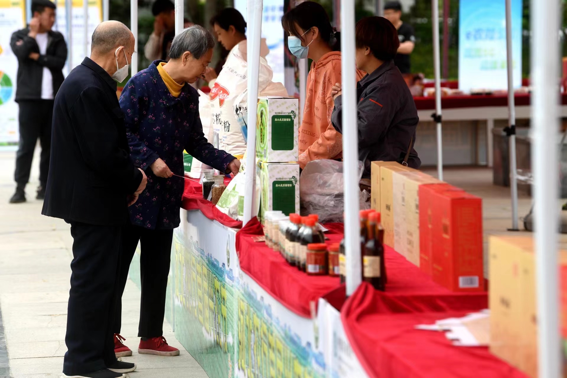 活動現場,饒陽縣當地20余家農業公司設置了展示攤位,展示的產品有種子、化肥、農藥、農副產品、智能農機等,前來咨詢、購買的人絡繹不絕。
