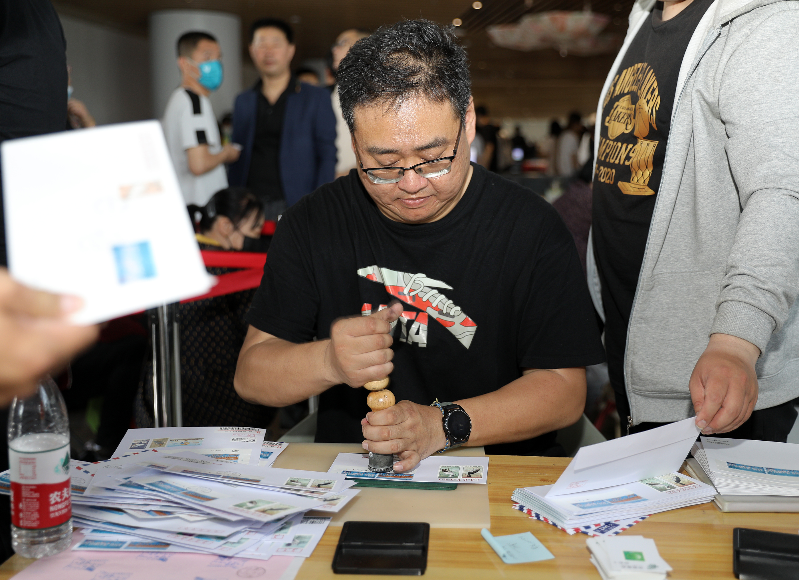 郵政工作人員現場加蓋文化郵戳。陳康攝