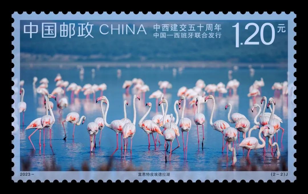 5月10日上午,《中西建交五十周年》紀念郵票首發儀式在衡水湖畔舉行。紀念郵票1套2枚,由中國郵政與西班牙聯合發行,郵票圖案以中國的衡水湖和西班牙的富恩特皮埃德拉湖為題材,展現出兩國湖泊的旖旎風光和自然生態特征,畫面構圖簡約明快,表現意境清朗優美。