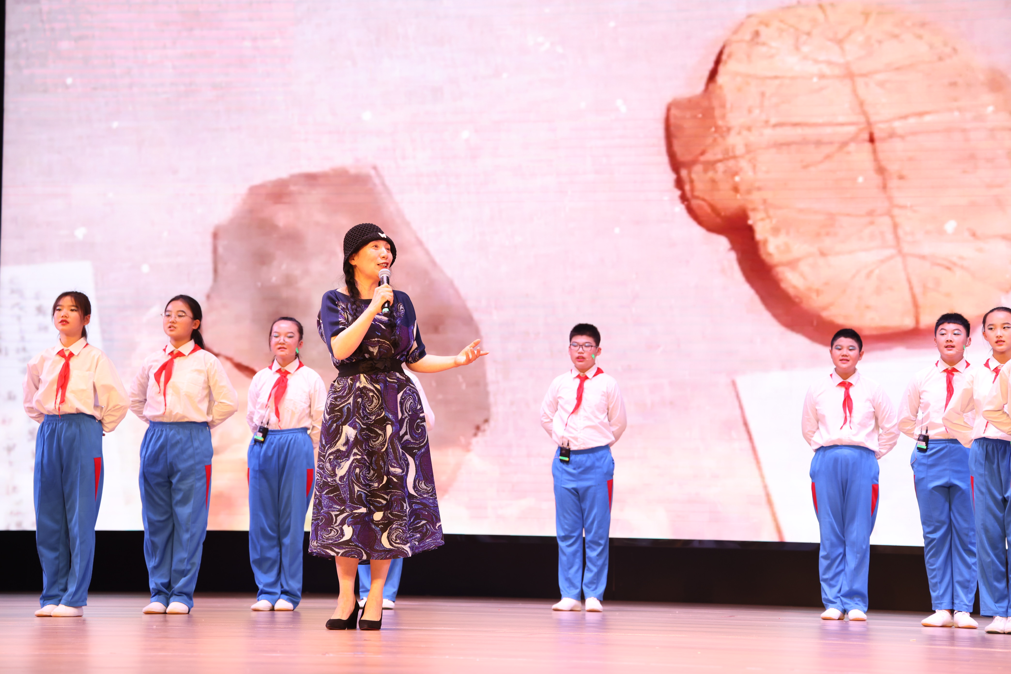 授課期間,中國(guó)當(dāng)代著名詩(shī)人阿紫現(xiàn)場(chǎng)帶領(lǐng)小學(xué)生誦讀了《讀中國(guó)》。千人劇院中響徹起洪亮有力、慷慨激昂的聲音,令人心潮澎湃,現(xiàn)場(chǎng)氣氛又一次推向高潮。授課結(jié)束后,劉紀(jì)宏老師與中央廣播電視總臺(tái)播音指導(dǎo)虹云老師共同表演經(jīng)典誦讀《精忠報(bào)國(guó)》,用細(xì)膩的情感和扣人心弦的演繹帶領(lǐng)全場(chǎng)觀眾穿越時(shí)空,感受到那個(gè)年代的歷史背景和厚重文化。聽眾無(wú)不熱血沸騰,現(xiàn)場(chǎng)一次次掌聲雷動(dòng)。