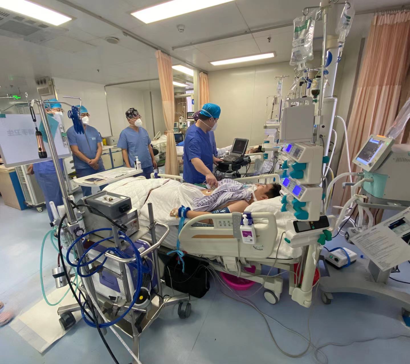 前不久,一位黃驊市在衡水就讀的學生,在新冠感染康復后因偶然受涼,總有間斷的胸痛、胸悶、周身乏力,休息后稍緩解,癥狀間斷發(fā)作,沒有重視。后因爆發(fā)性心肌炎,出現(xiàn)心源性休克,緊急轉(zhuǎn)院至哈院重癥醫(yī)學科。亢宏山帶領ECMO團隊成員、主任醫(yī)師王金榮、張建軍迅即到崗,ECMO護理小組成員萬利、高森、潘英琦也迅速到位,綜合評估后給予患者行ECMO治療,氣管插管,鎮(zhèn)靜鎮(zhèn)痛。ECMO建立以后,應用激素、丙種球蛋白、腸內(nèi)營養(yǎng)、營養(yǎng)心肌等綜合治療。一個難關接著一個難關地闖, 24小時守護,密切觀察、及時處理每一個微小的病情變化,終于,患者心臟功能在逐漸恢復,心律逐漸穩(wěn)定,各項化驗指標好轉(zhuǎn),3天后撤除心臟輔助裝置,心功能完全恢復!亢宏山說,“我們把所有的精氣神都放在了治療與救護上,在這里大家都像裝上了‘一鍵啟動’的按鈕,一有情況馬上進入狀態(tài)!”