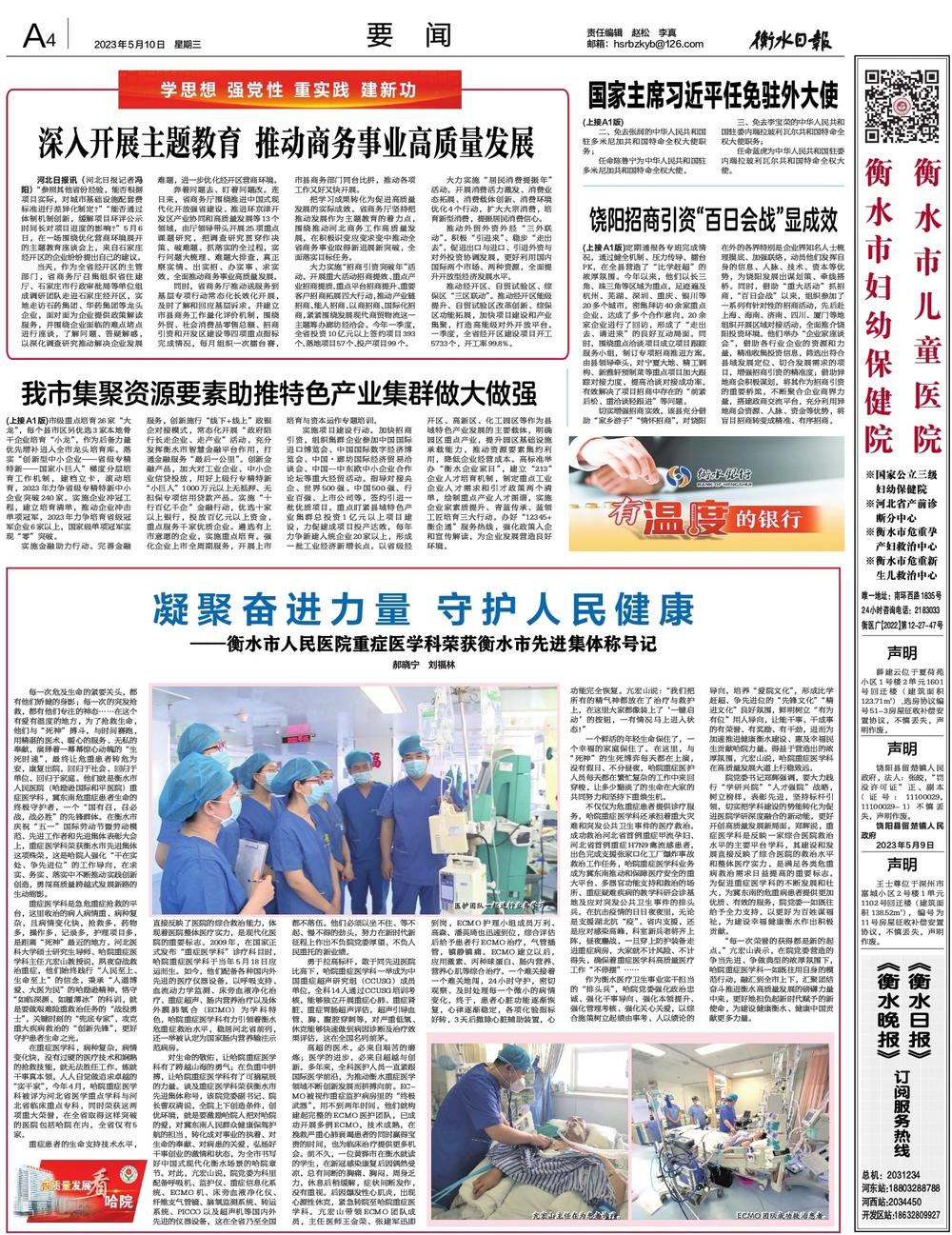 每一次危及生命的緊要關頭,都有他們矯健的身影,每一次的突發(fā)搶救,都有他們專注的神態(tài)……在這個有愛有溫度的地方,為了搶救生命,他們與死神搏斗,與時間賽跑,用精湛的醫(yī)術、暖心的服務、無私的奉獻,演繹著一幕幕驚心動魄的“生死時速”,最終讓危重患者轉(zhuǎn)危為安,康復出院,回歸于社會、回歸于單位、回歸于家庭。他們就是衡水市人民醫(yī)院(哈勵遜國際和平醫(yī)院)重癥醫(yī)學科,冀東南危重癥患者生命的終極守護者,一個“國有召,召必戰(zhàn),戰(zhàn)必勝”的先鋒群體。在衡水市慶?!拔逡弧眹H勞動節(jié)暨勞動模范、先進工作者和先進集體表彰大會上,重癥醫(yī)學科榮獲衡水市先進集體這項殊榮,這是哈院人強化“干在實處、爭先進位”的工作導向,在求實、務實、落實中不斷推動實踐創(chuàng)新創(chuàng)造,勇闖高質(zhì)量跨越式發(fā)展新路的生動縮影。