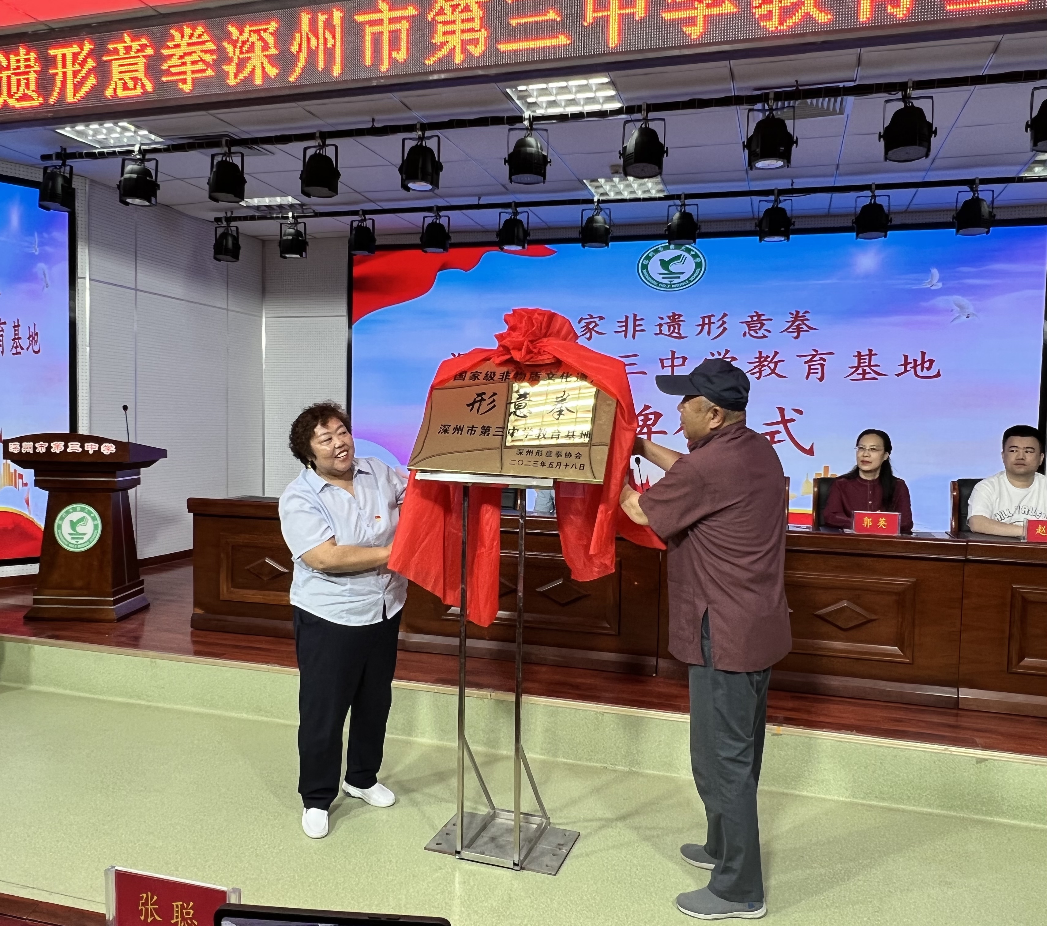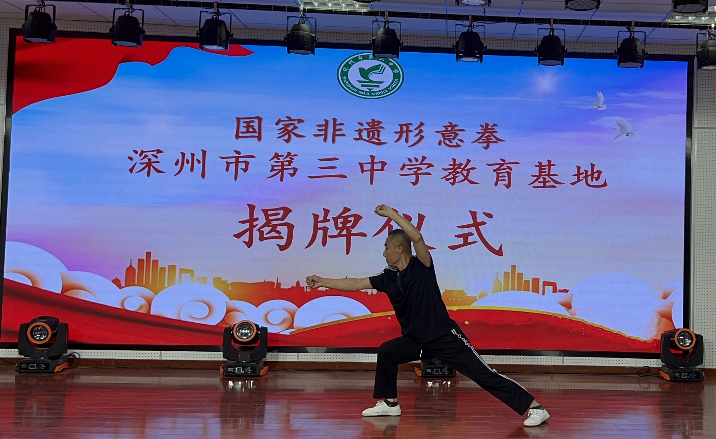 5月18日,深州市第三中學舉行國家非遺形意拳教育基地揭牌儀式,非遺形意拳國家級傳承人張玉林和深州市第三中學黨支部書記、校長翟燕共同揭牌。隨后,深州形意拳協會成員進行了形意拳技能展示,贏得了在場學生的陣陣掌聲。