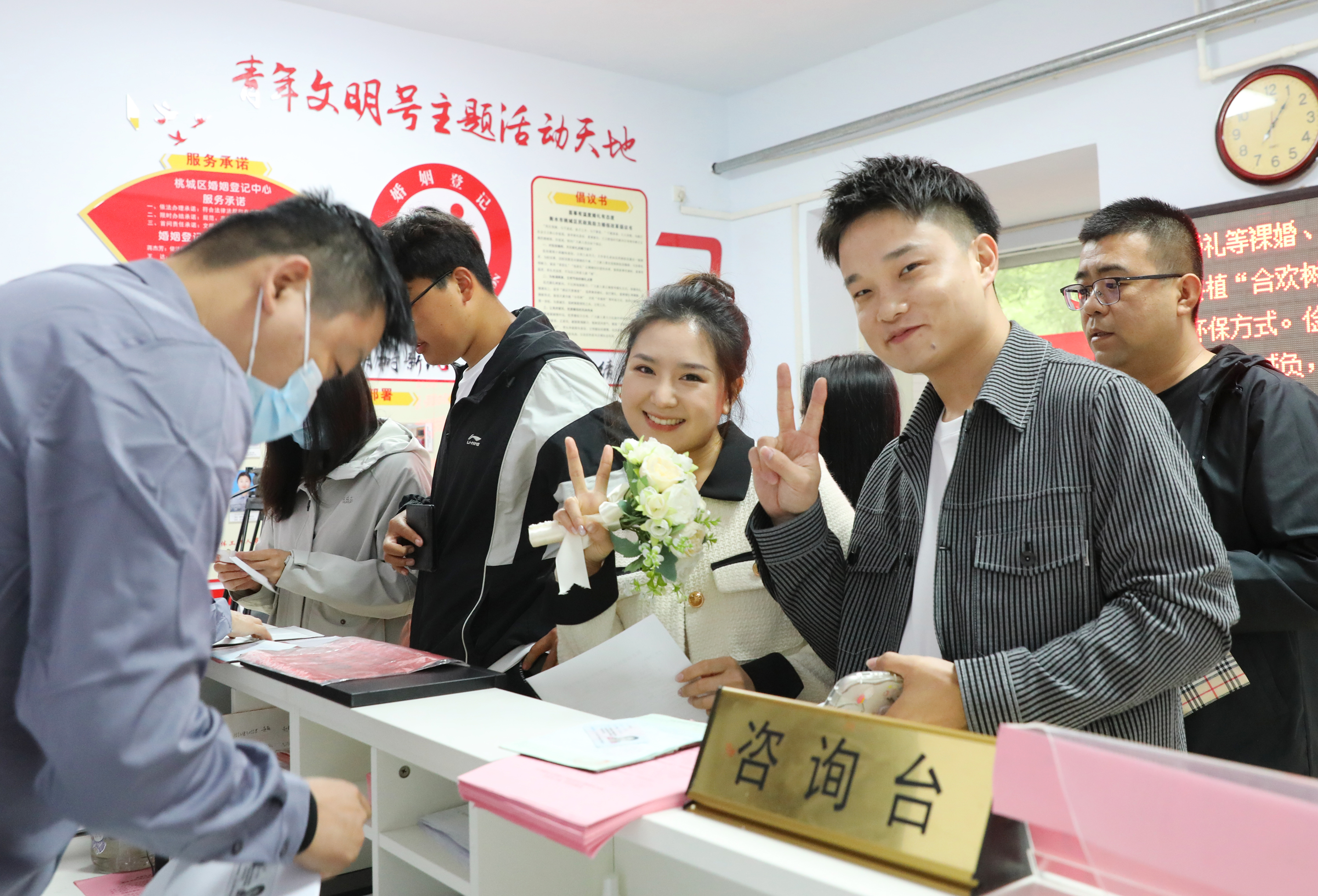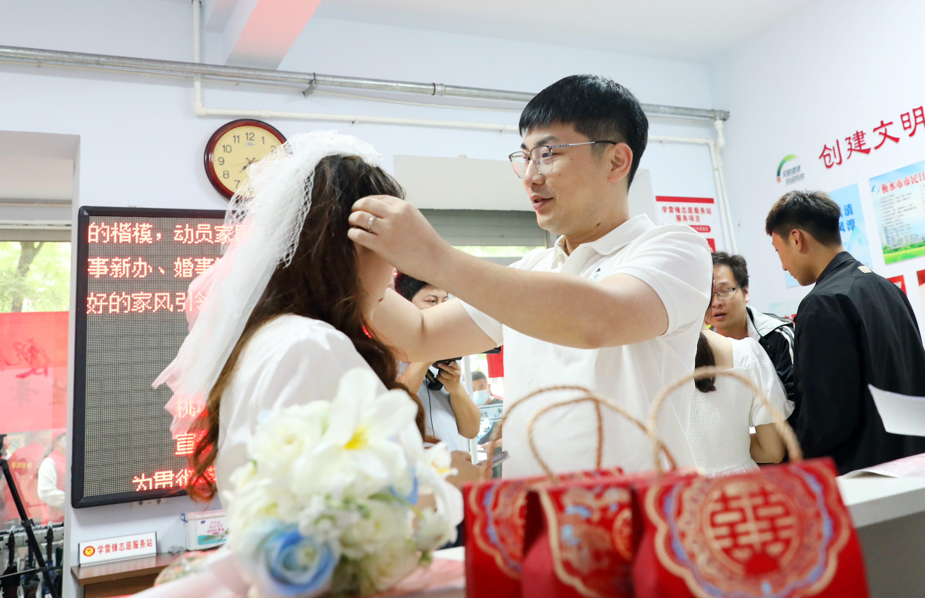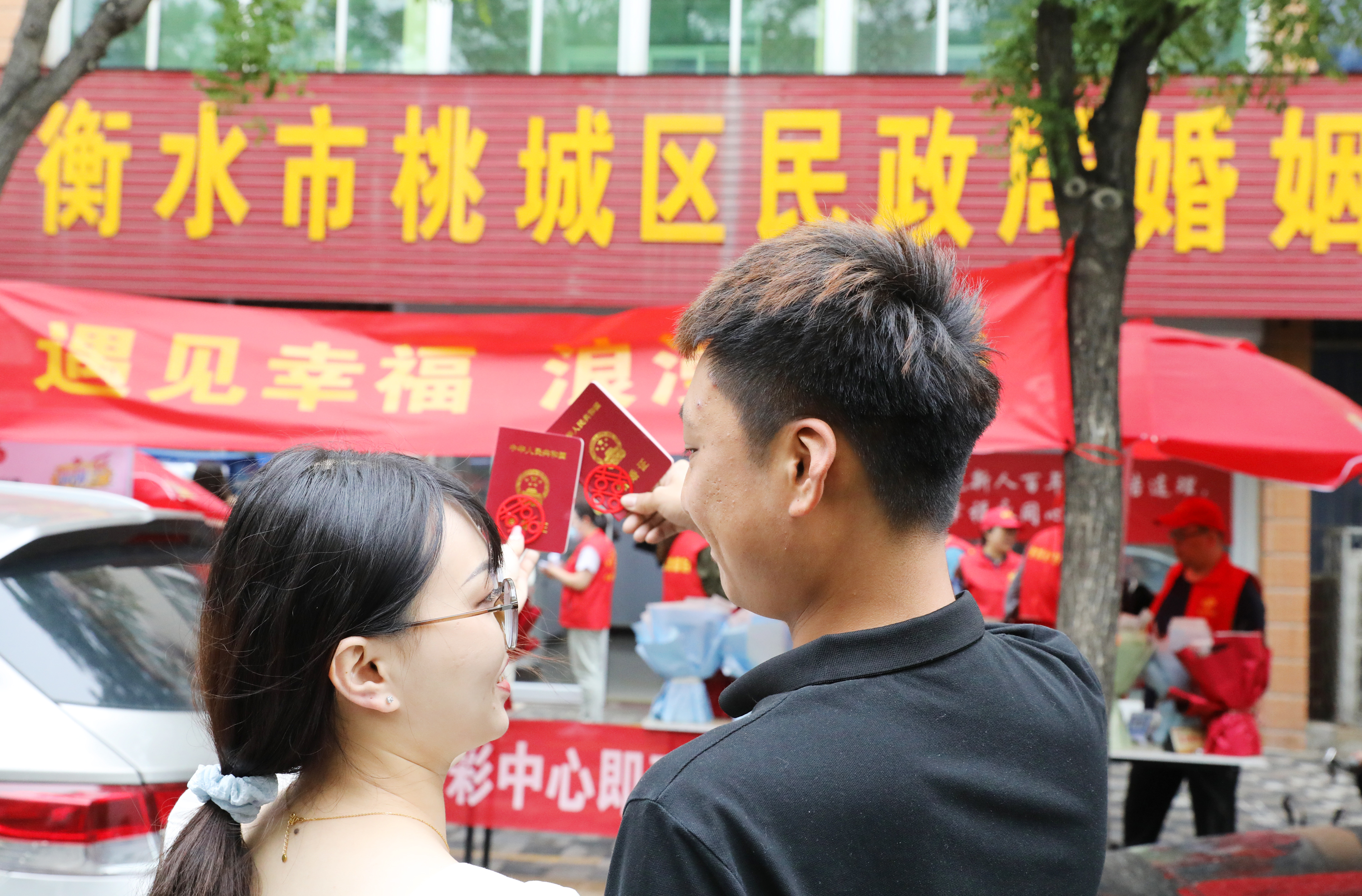 截至上午11時,記者從桃城區婚姻登記處獲悉,共為107對新人完成了結婚登記。