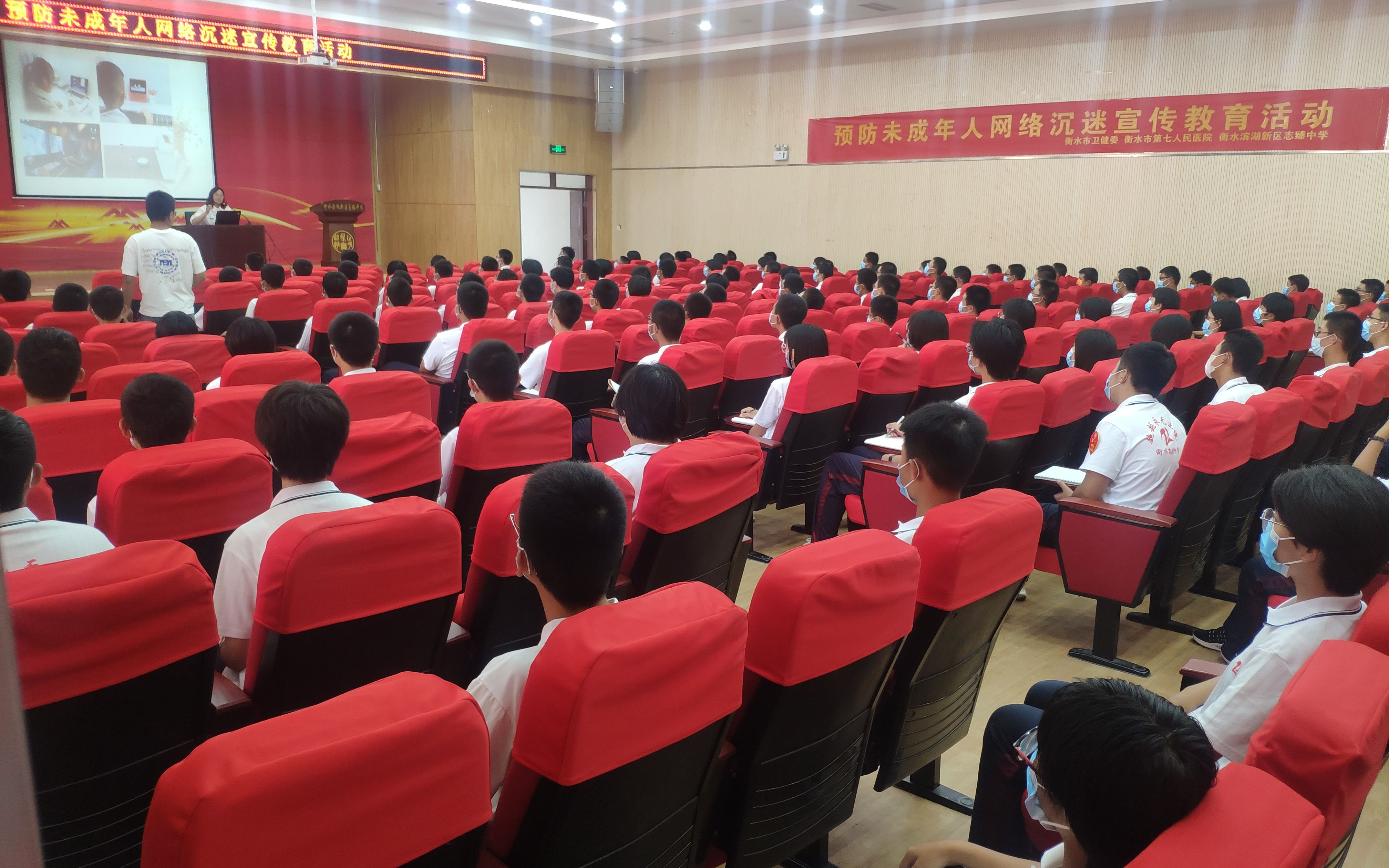 宣教活動中,來自衡水市第七人民醫(yī)院的三級心理咨詢師牛孟娣,利用精心準備的課件,通過課堂的形式,就“網(wǎng)絡使用與沉迷現(xiàn)狀”“網(wǎng)絡沉迷定義和危害”“網(wǎng)癮綜合征八項標準”“網(wǎng)絡成癮機制和原因探究”“網(wǎng)絡成癮的預防及治療”等內(nèi)容,向?qū)W生們講解了網(wǎng)絡沉迷的危害、未成年染上網(wǎng)癮的原因和文明上網(wǎng)、加強自我保護的建議,引導學生文明上網(wǎng),從自身做起。