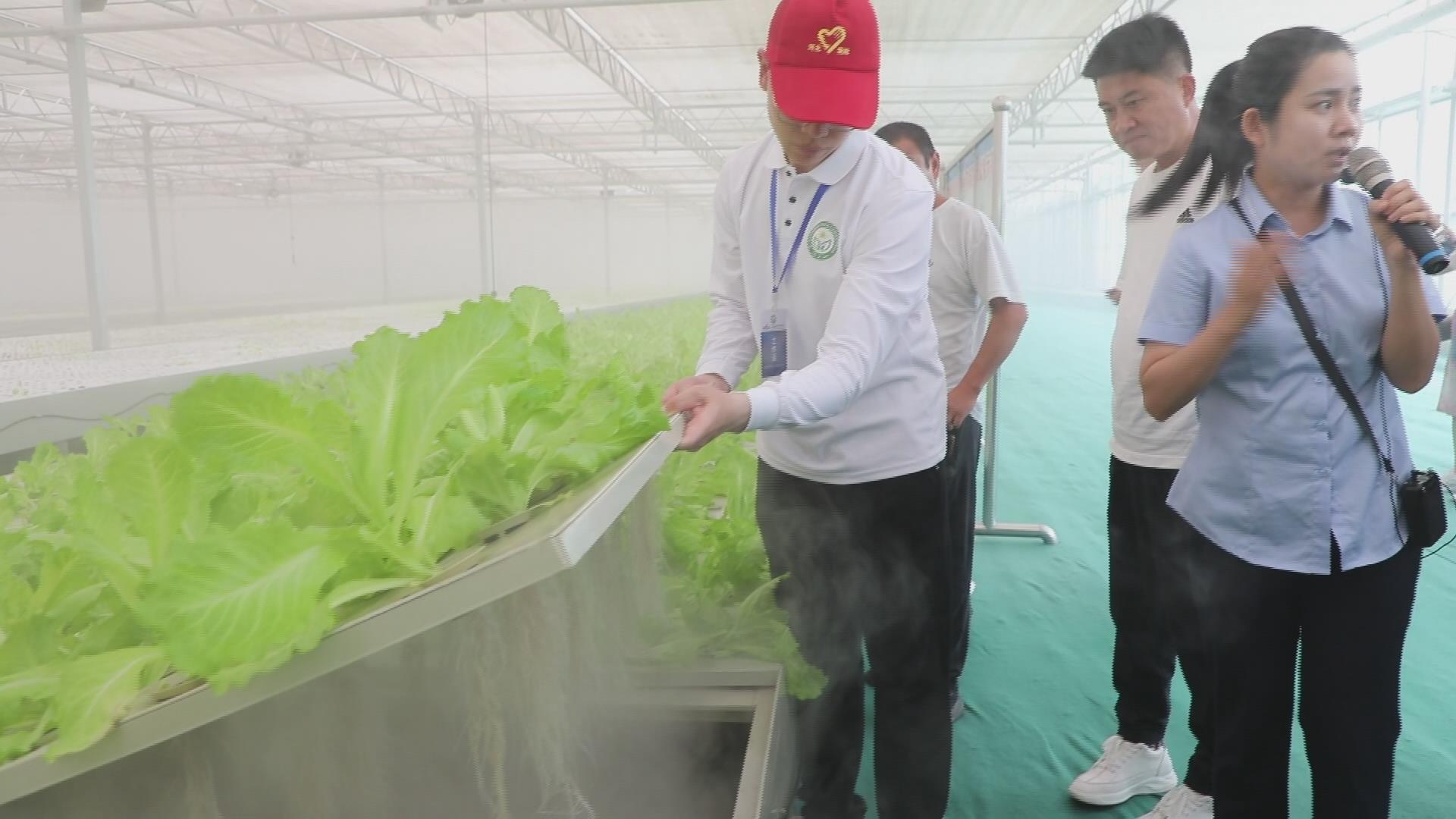 工作人員展示氣霧式蔬菜栽培。侯龍 攝