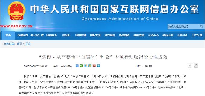 “清朗·從嚴整治‘自媒體’亂象”專項行動取得階段性成效