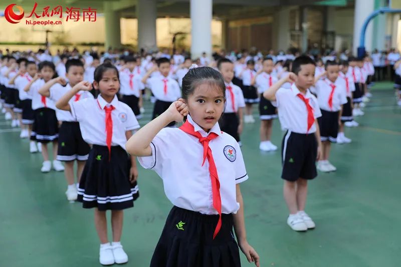 5月30日,海南省海口市第二十五小學(xué)舉行少先隊新隊員入隊儀式。人民網(wǎng)-海南頻道記者 孟凡盛 攝