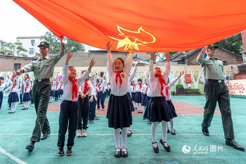 5月31日,山西省實驗小學(xué)一年級學(xué)生加入中國少年先鋒隊。人民網(wǎng) 盧鵬宇攝