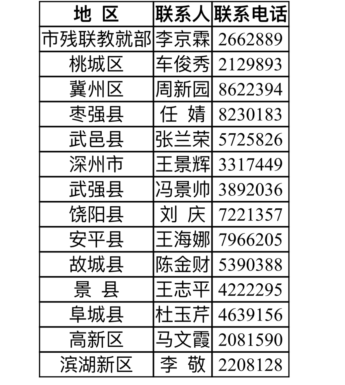 衡水對(duì)考入高校困難殘疾學(xué)生及困難殘疾人家庭子女資助工作聯(lián)系人名單