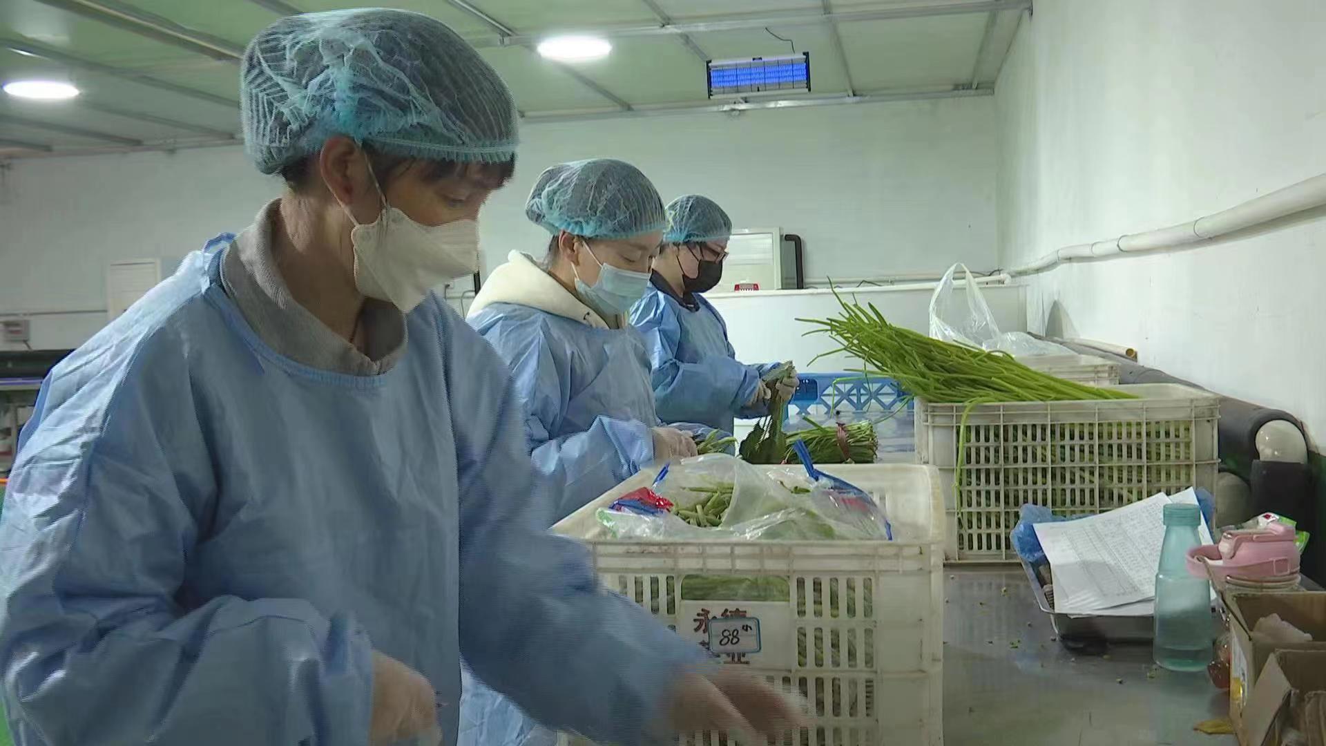 工人將新鮮蔬菜切割處理。崔佳棟 攝