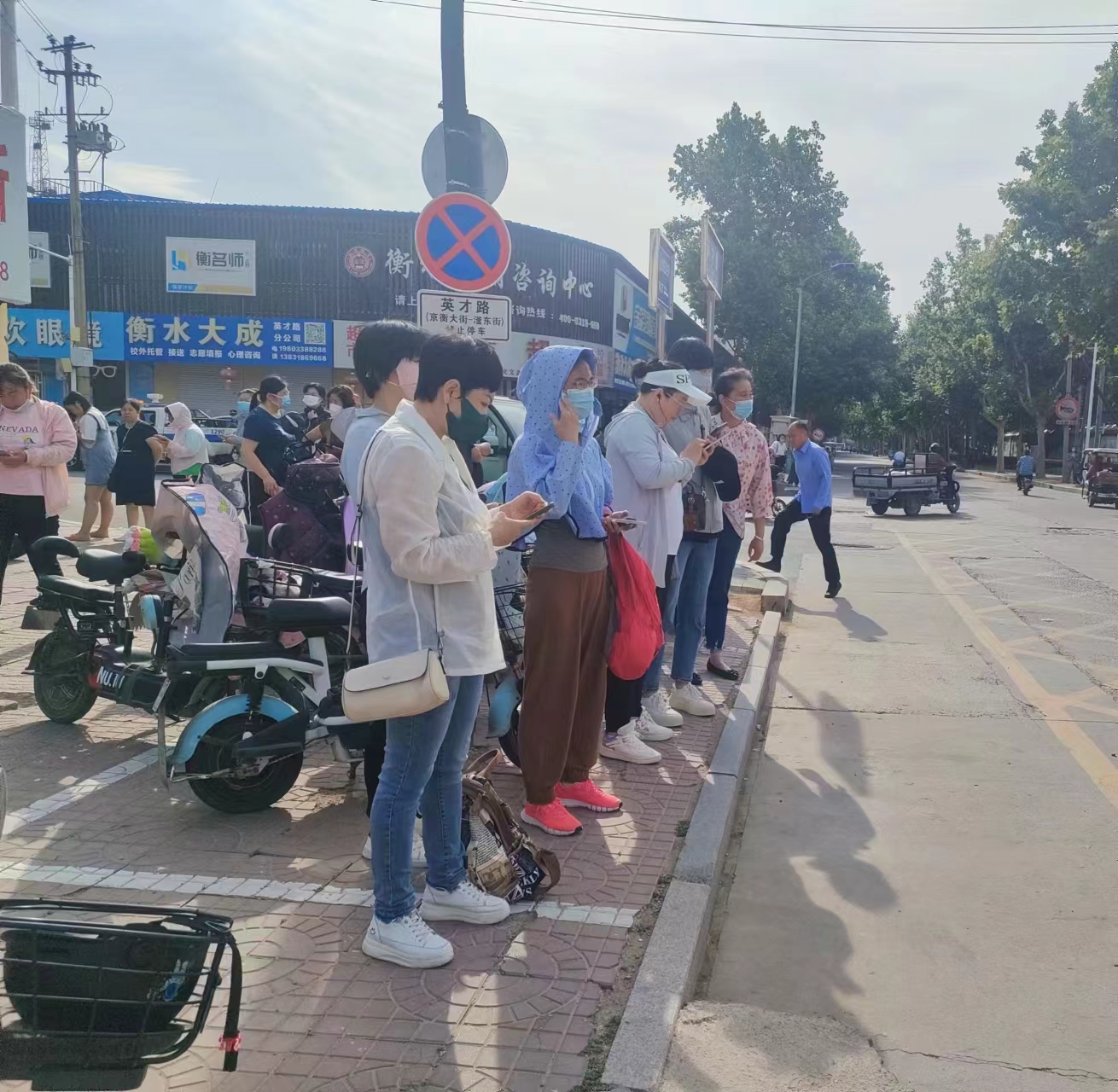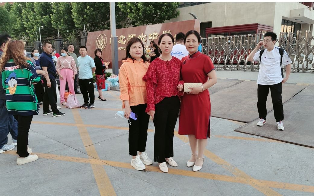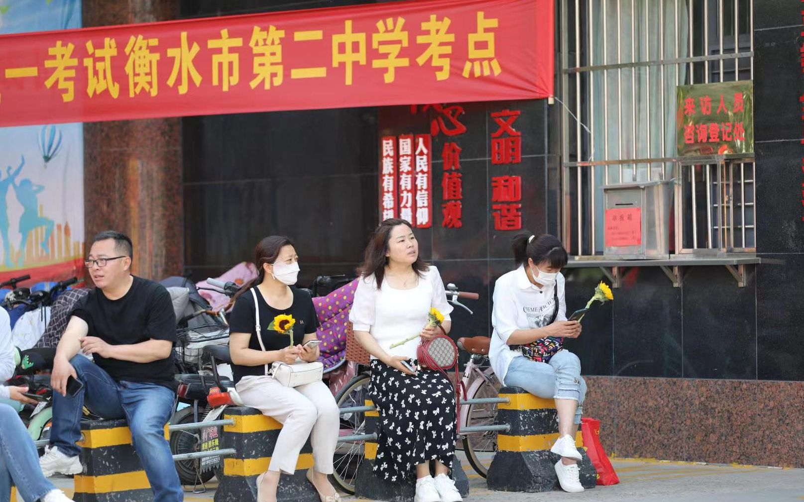 旗袍、向日葵、紅T恤……默默守候在衡水中學考點外的家長們,用自己的方式為孩子加油鼓勁。市民臧女士穿著旗袍,和愛人站在考點外靜靜地看著學校大門,滿懷希冀與祝福:“這旗袍是我精心挑選的,黃綠相間,寓意是“一路綠燈,走向輝煌。”市民李女士穿著旗袍和其他幾位家長一起聊天暢談,緩解緊張的情緒。“雖然在考場外見不到孩子,但還是愿意過來看看。感覺離他近一些,自己心里也踏實。”李女士坦言。