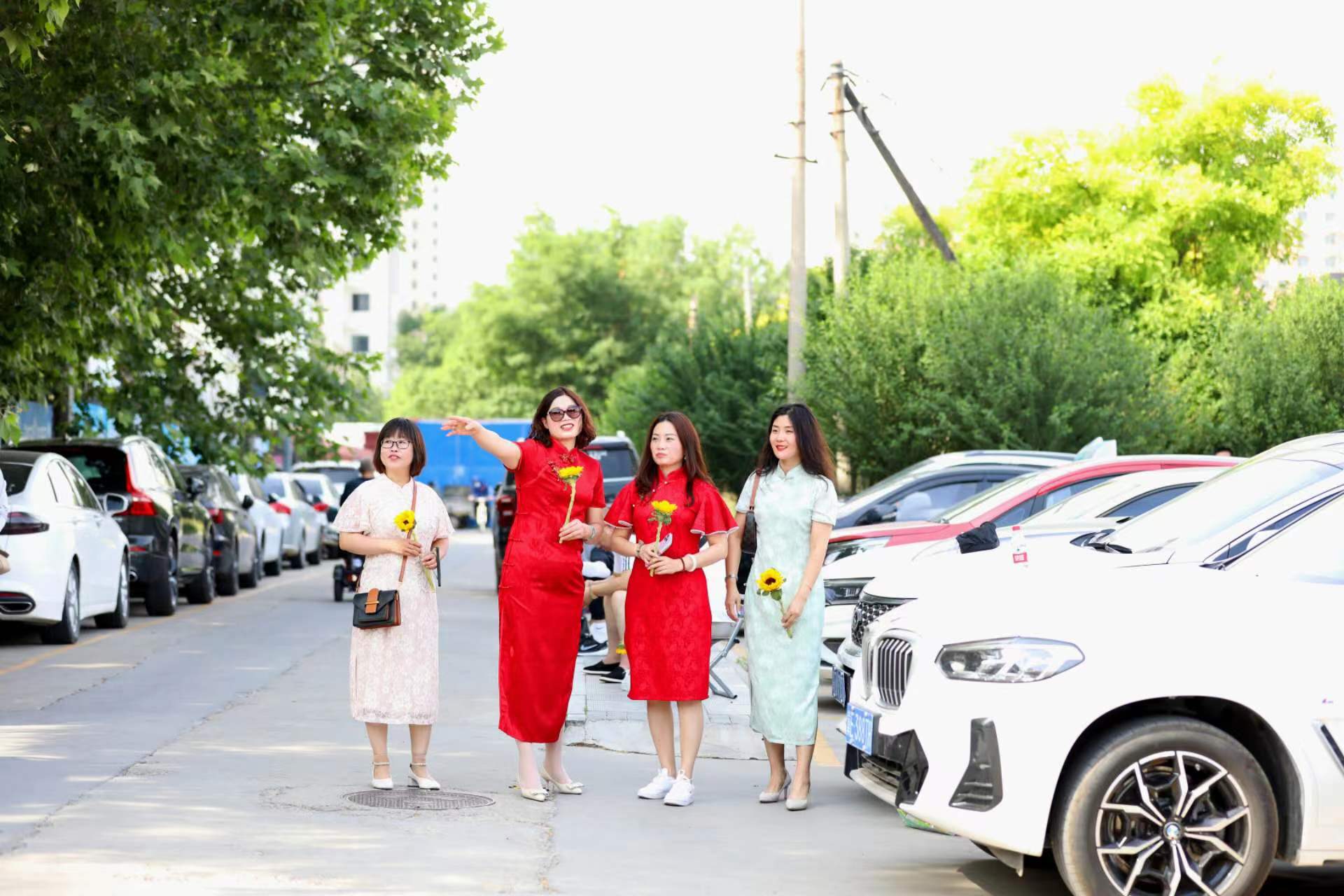 默默守候在考點外的考生家長用自己的方式為孩子送祝福。身穿粉色旗袍的劉瑞華手拿向日葵,不時望向學校大門。“我特意請了假來陪孩子高考。希望孩子能考上理想大學。”“這大紅旗袍平時沒穿過,今天特意為高考穿上,祝孩子考試‘開門紅’!”身著耀眼紅色旗袍的考生家長郭元燕笑著說,“旗袍寓意‘旗開得勝’,向日葵祝福孩子一舉奪魁,就是為討一個好彩頭。孩子這么多年刻苦學習不容易,祝愿每一位高考學子都能得償所愿!”