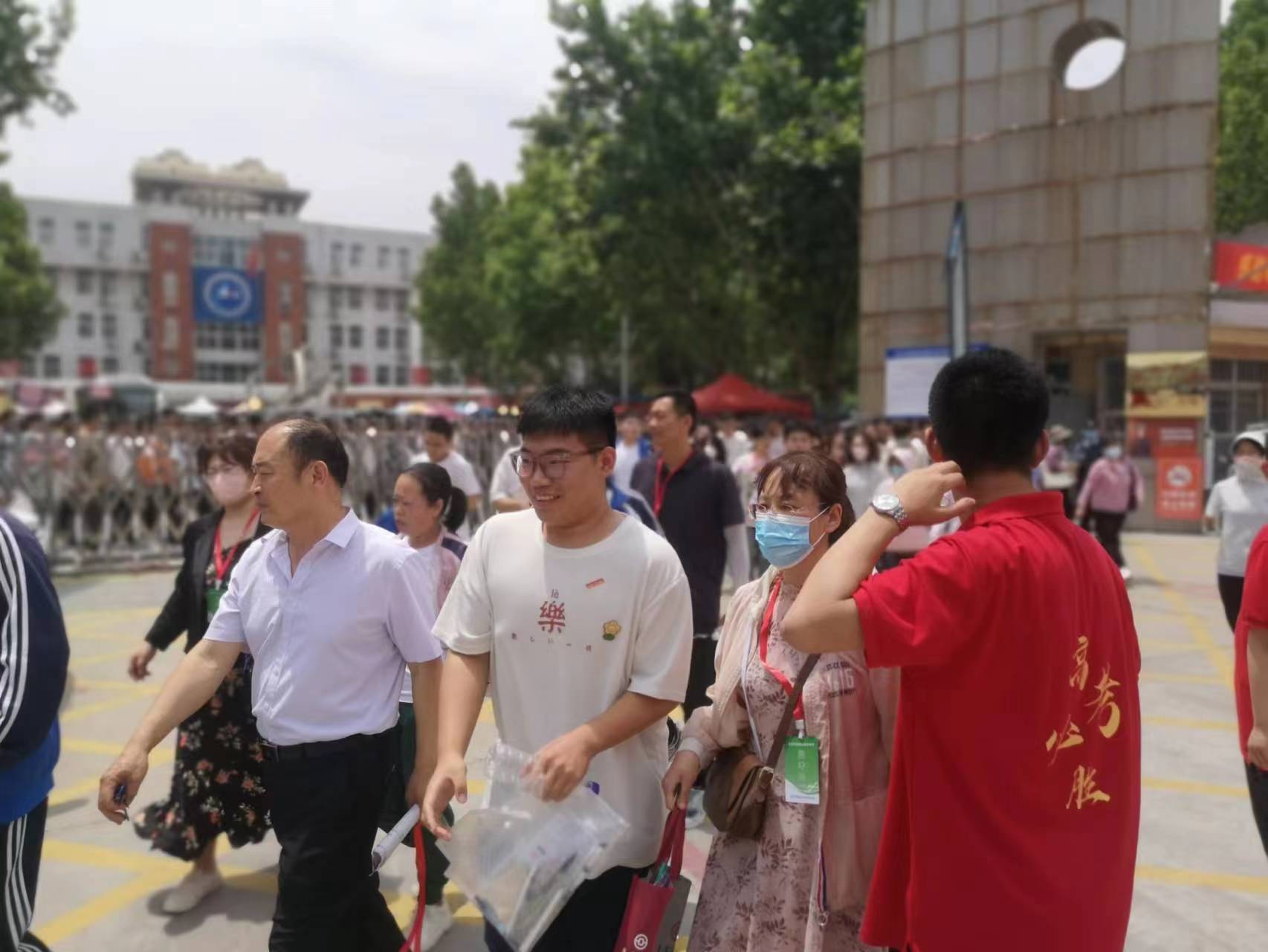 上午11時,艷陽高照,室外氣溫33℃。考場內的學子們奮筆疾書,考場外的家長們守在校門口,在心里默默地祝福著。