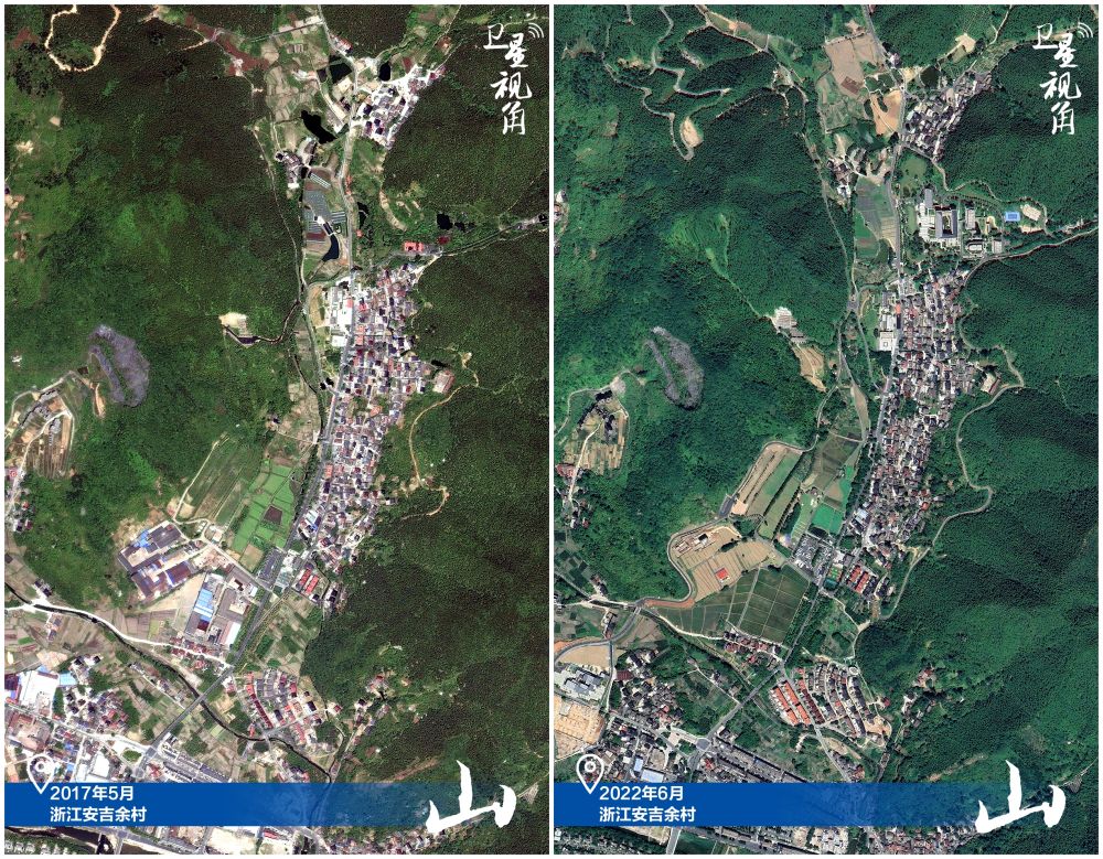 ↑2022年跟2017年相比,余村山體植被更豐富,鄉村環境更宜居。