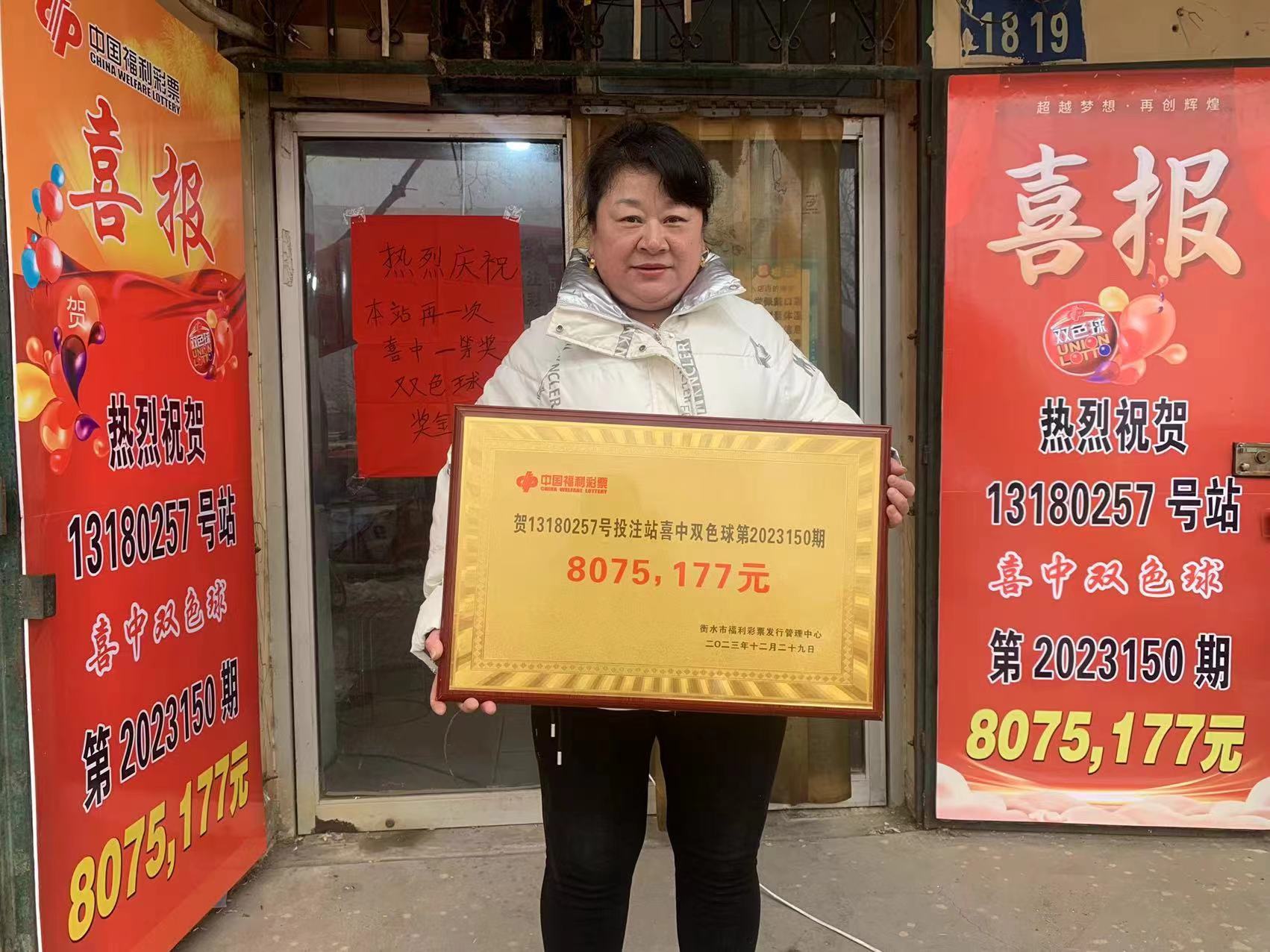 6月11日,衡水市故城縣傳來喜報,在當天開出的福彩雙色球2023066期中,故城縣辛莊13189023福彩投注站一購彩者憑借一張10元5注單式票,中出一等獎1注,獎金合計5976728元。