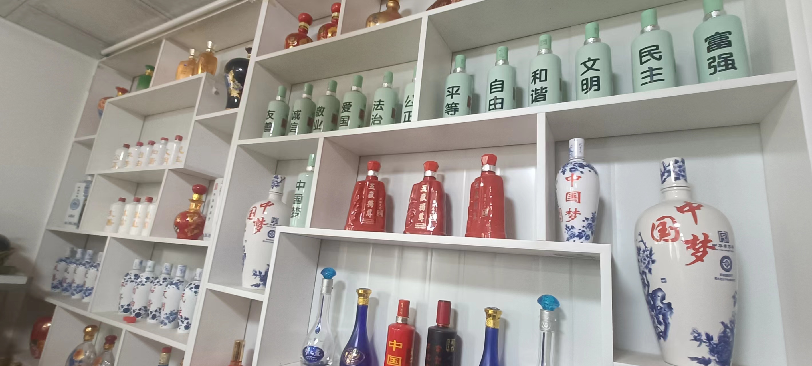 三個展館中,就屬“九”瓶詩畫院最有個性。農家小院綠竹猗猗,詩情畫意;房內3600多種酒瓶匯成了瓷器和玻璃的海洋。小院所掛匾額“‘九’瓶詩畫院”為什么是“九”而不是“酒”?孫中杰老人解釋,"九"是個位數里最大的整數,在傳統文化里有“多”“全”的寓意。他跑遍全國各地,收藏的3600余種酒瓶,基本上囊括了全國所有酒品牌。而用“詩畫”一詞,表達的就是文化含義。酒文化本身就是中國傳統文化的重要組成部分,老人還賦予酒瓶特殊的文化內涵,將一年四季、十二生肖、二十四節氣、百家姓等中國特有的文化符號,還有三字經、道德經、周易等經典名句,以及社會主義核心價值觀、中國夢等元素都以標簽形式打在酒瓶上,增添了文化教育意義,可謂包羅萬象。