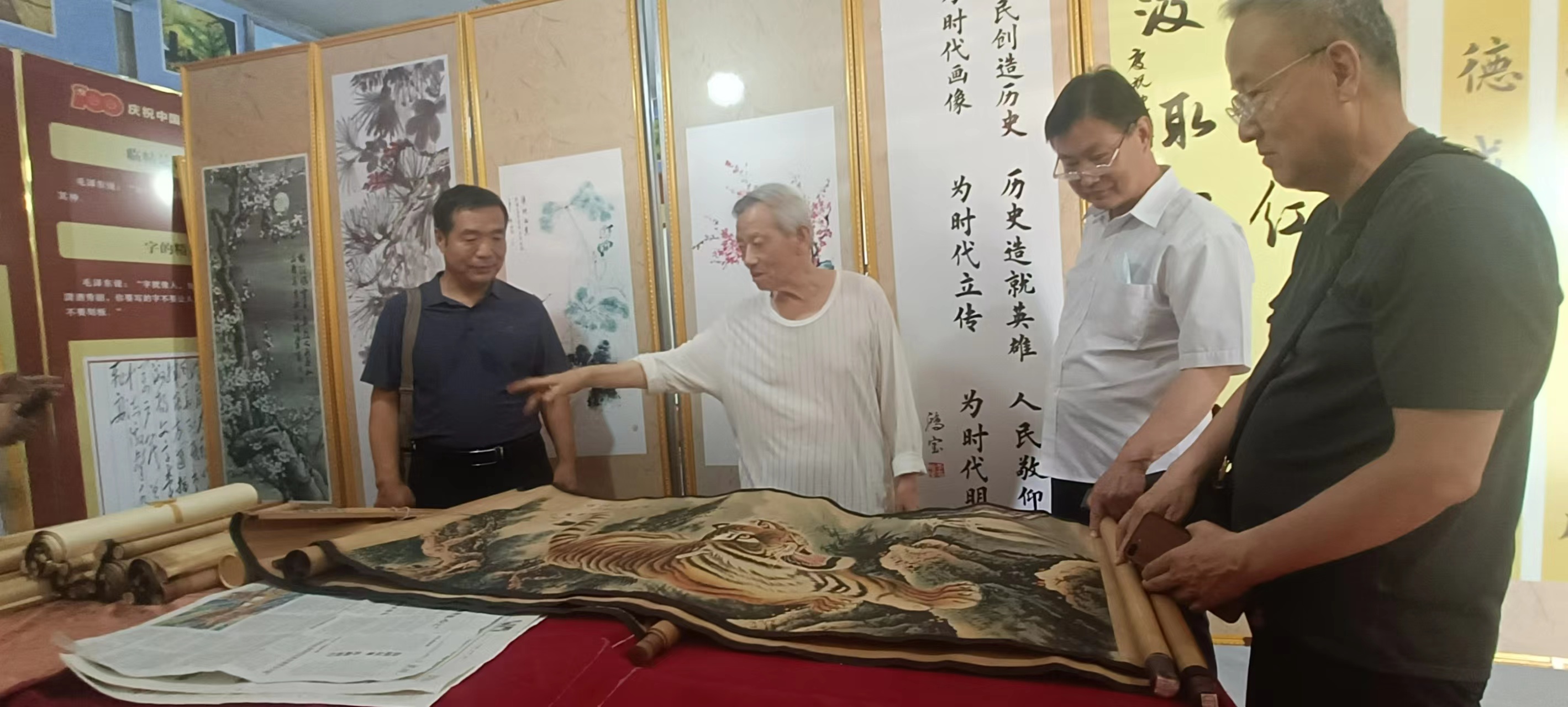 展館于2021年為慶祝中國共產黨百年華誕而建,當時展出全國各地名家的81幅作品。活動結束后,老人將展館保留下來,持續發揮其育人的功能。每年根據教育主題不同,不斷增添新作品。如今,作品數量已增至110幅,包括龍之舞書畫集、傳世名畫、歷代名人字畫、十大畫家作品集、中國書法一至七屆蘭亭獎獲獎者作品集、書畫長卷等。并先后舉辦了“兩學一做”學習教育書畫展、喜迎黨的二十大書畫展、慶祝中國空間站建成書畫展、迎新春書畫展、市縣書畫筆會等活動。