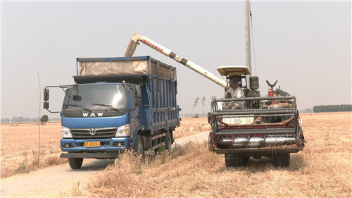 又是一年夏收季,小麥收割正當時。近日,衡水市武強縣西樊屯村股份經(jīng)濟合作社的小麥開始收割。麥田中,農(nóng)機手熟練地操作著聯(lián)合收割機,開足馬力在田間穿梭,成熟的麥穗,順著傳送帶進入收割機。收購小麥的大貨車早已在麥田旁等候,飽滿的麥粒就像一顆顆“金豆子”流向貨車車廂,就這樣“金豆子”變成了“錢票子”。