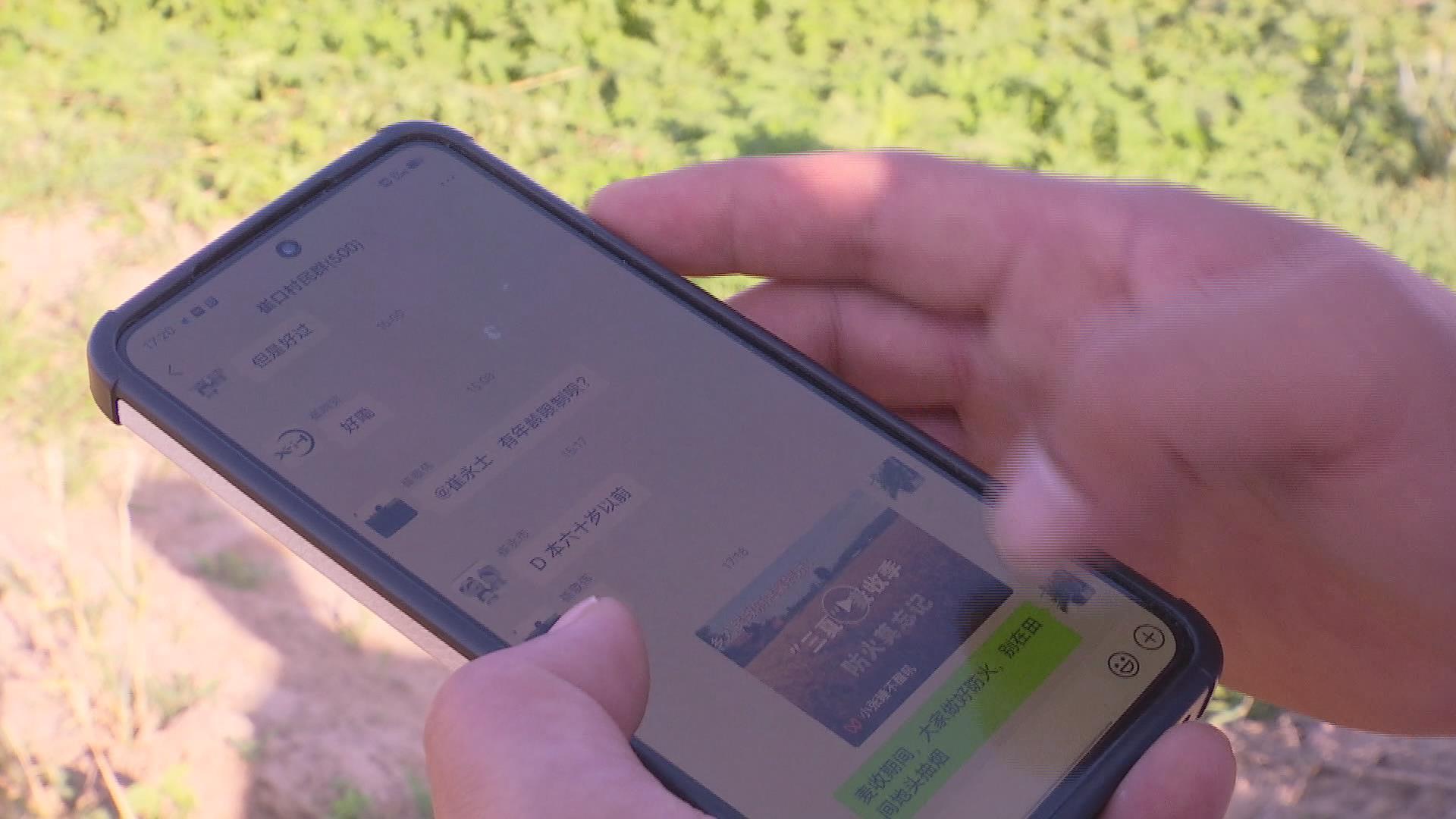 通過手機微信群提醒村民防火事項。宋龍飛 攝