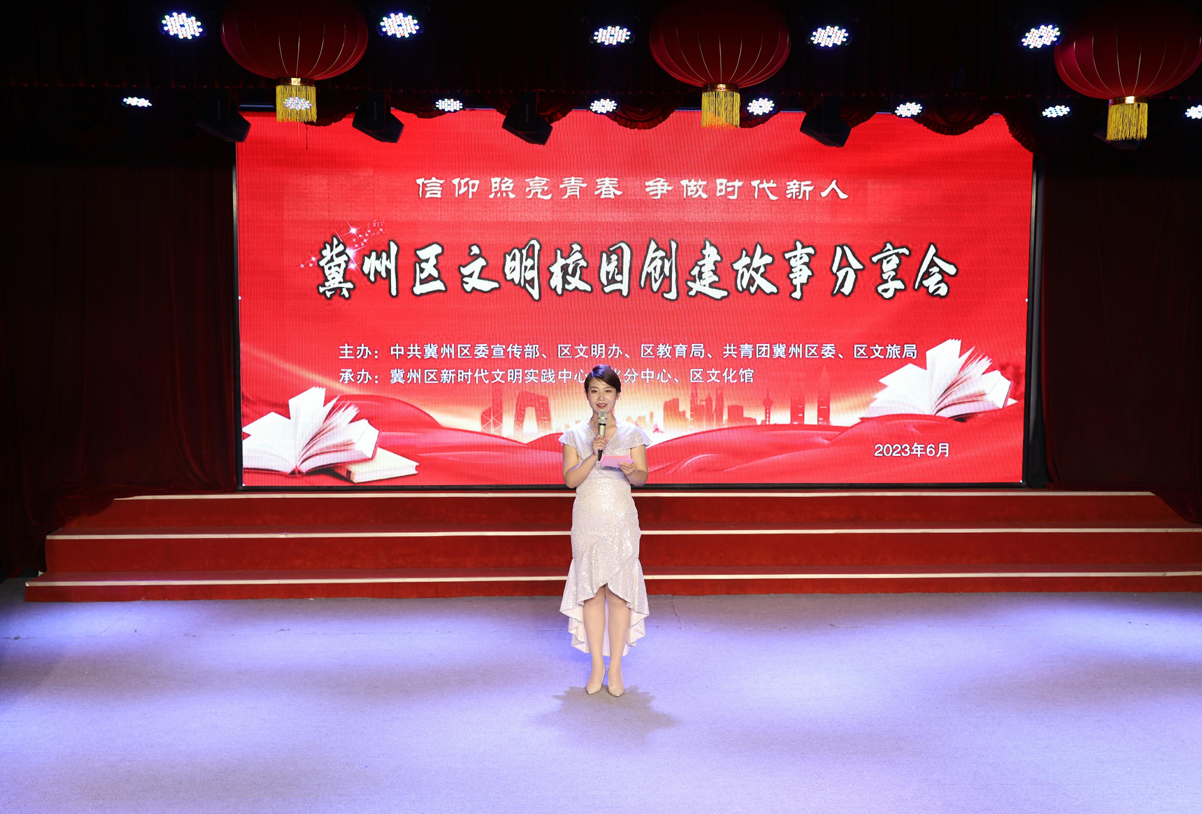 分享會以真實、鮮活、生動、典型案例為載體,講述了廣大師生參與文明校園創建的親身經歷。來自區第二小學的老師康蕾和學生以《平凡瞬間文明傳遞》為題,講述了學校努力創建快樂、進取、文明校園的故事;區第三小學老師和孩子們表演的《立德樹人擔使命 文明創建育新人》充分展現出廣大師生昂揚向上的精神風貌;冀州中學陳崎老師講述用愛與尊重點燃每一名學生學習熱情的故事;區一小郭云芳老師講述了賡續紅色血脈、打造紅色校園的全過程。