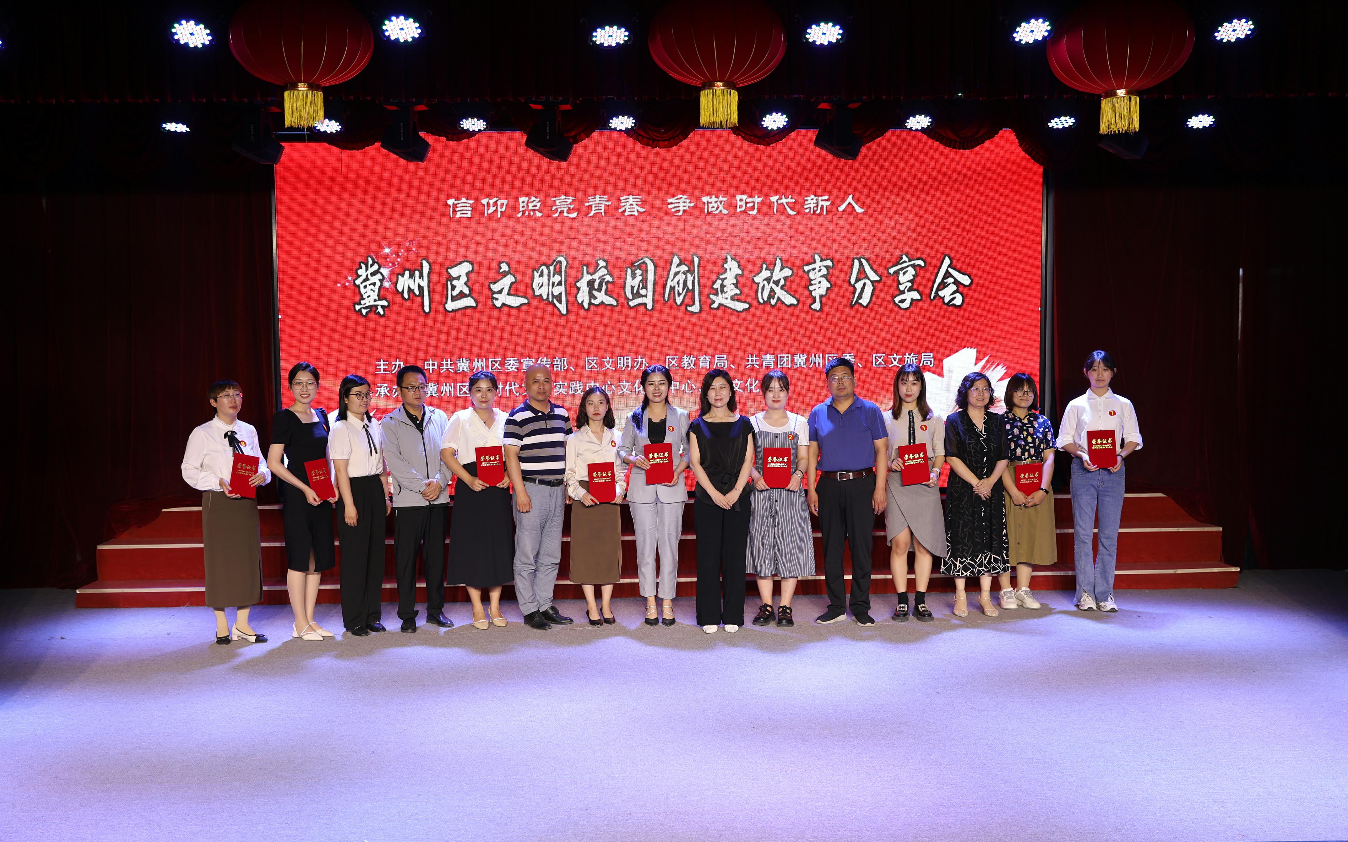 近日,由冀州區委宣傳部、區文明辦、區教育局主辦的冀州區文明校園創建故事分享會在區文化館舉辦。來自全區9所學校的60余名師生代表參加活動。