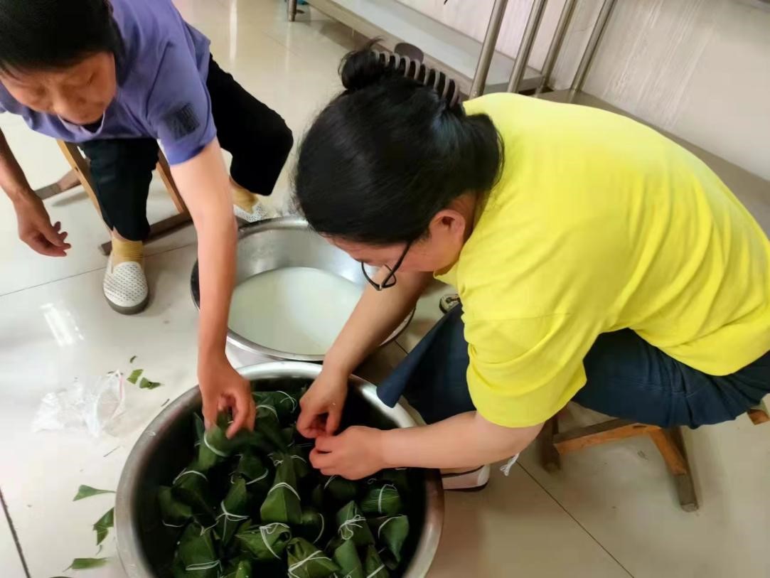 為盡早給老人們送去粽子,當天一大早縣稅務局志愿者們就來到單位食堂包粽子。大家齊心協力、分工明確,卷粽葉、放餡料、捆粽繩,很快一個個美味的粽子就制作完成。在安平縣春暉園養老院,志愿者們把“暖心粽子”送到老人手里,親切詢問老人們的身體和生活情況,并詳細了解了養老院的相關工作情況,與他們一起過端午、話家常,送上端午節的問候和祝福。