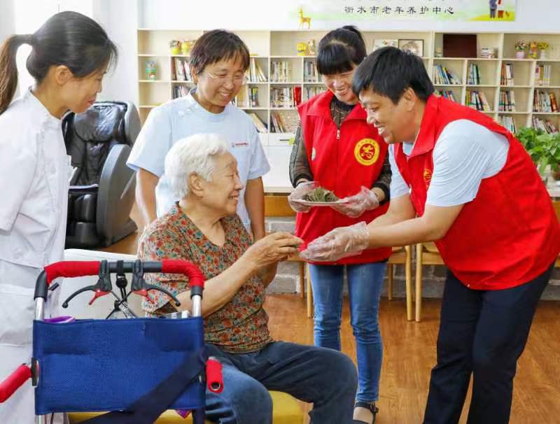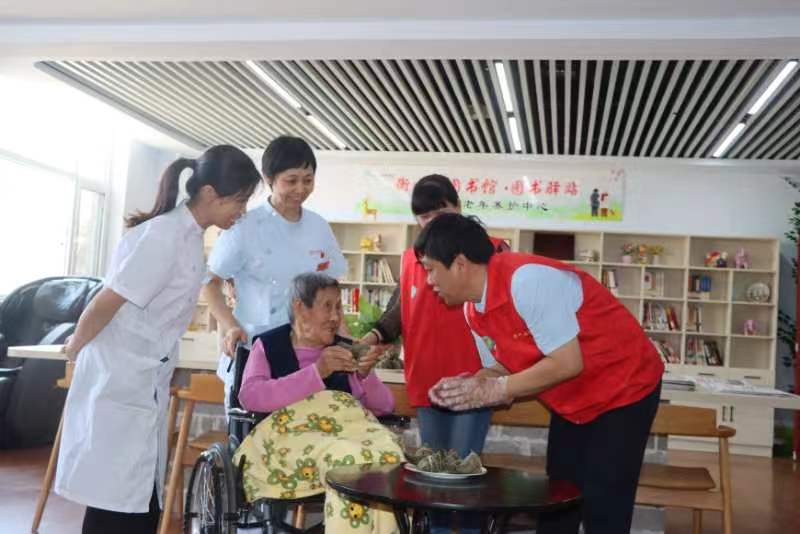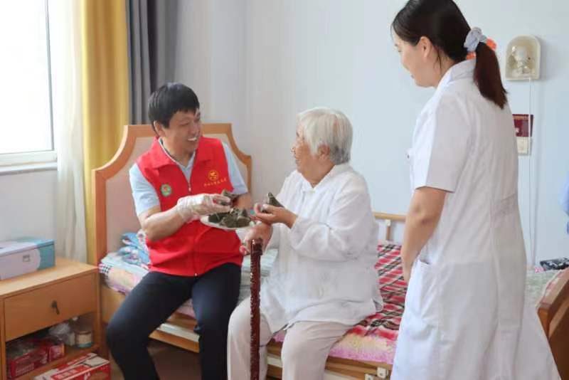活動中,志愿者們還看望了衡水市老年養護中心的老人們,與他們親切地拉家常,詢問他們的生活和身體情況,并祝福他們健康長壽、節日快樂。大家把帶來的愛心粽子送到每一位老人手中,老人們吃著清香可口的粽子,個個臉上樂開了花。