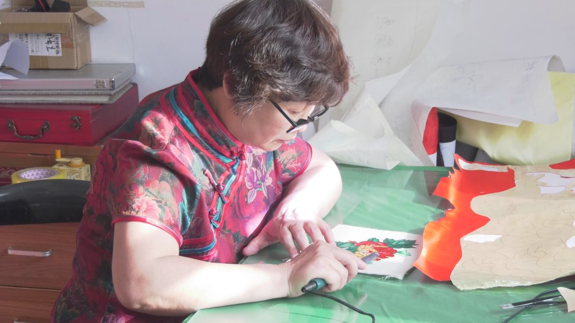 布雕畫是以特制烙鐵為筆在絲綢上“雕刻”,蘊含了歷史、美術、地方民情風俗等元素,是獨特傳統手工技藝。據任雪青介紹,制作布雕畫須經過設計圖紙、繪畫、選材、補色、固形等幾十道繁瑣的手工工序,色彩多達百余種。再經過烙、點、勾、雕、熨等技法,才能呈現一副精美的作品。