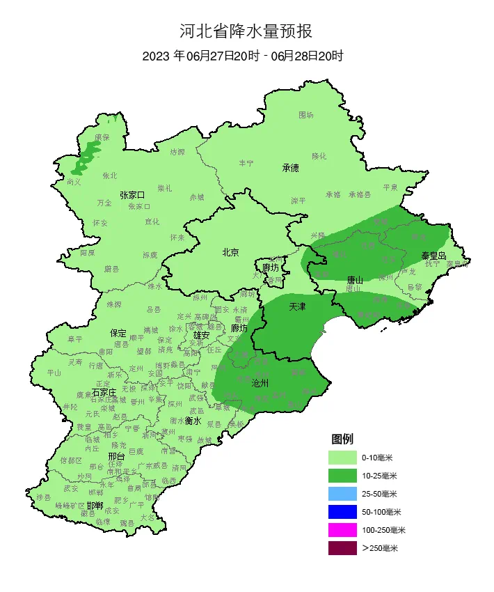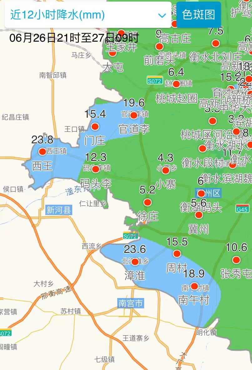 衡水市氣象臺6月27日7時發布雨情信息,昨天夜間出現的雷雨天氣,全市平均降水量6.7毫米,小雨量級,最大降水量出現在冀州西王23.8毫米(中雨),另有30個站10.3到23.6毫米(中雨),其它10毫米以下,市氣象局站6.8毫米。