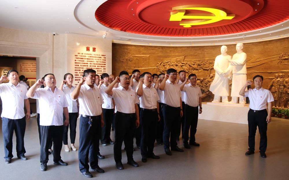 重溫入黨誓詞,堅定理想信念。“我志愿加入中國共產黨,擁護黨的綱領,遵守黨的章程,履行黨員義務,執行黨的決定,嚴守黨的紀律,保守黨的秘密,對黨忠誠,積極工作,為共產主義事業奮斗終身……”全體黨員干部來到紀念館大廳的“宣誓墻”,聯社黨委委員、紀委書記、監事長張曉龍同志帶領全體黨員干部面向黨旗,舉起右手,重溫入黨誓詞,重憶入黨初心,進一步堅定全體黨員干部對黨的忠誠熱愛和為共產主義事業奮斗終身的理想信念。