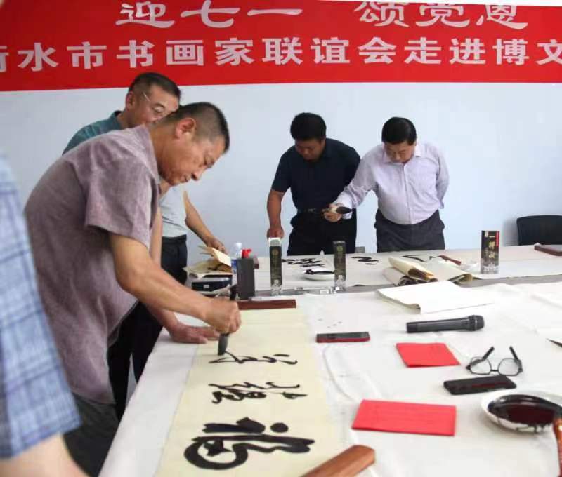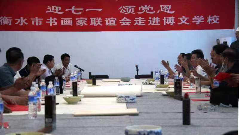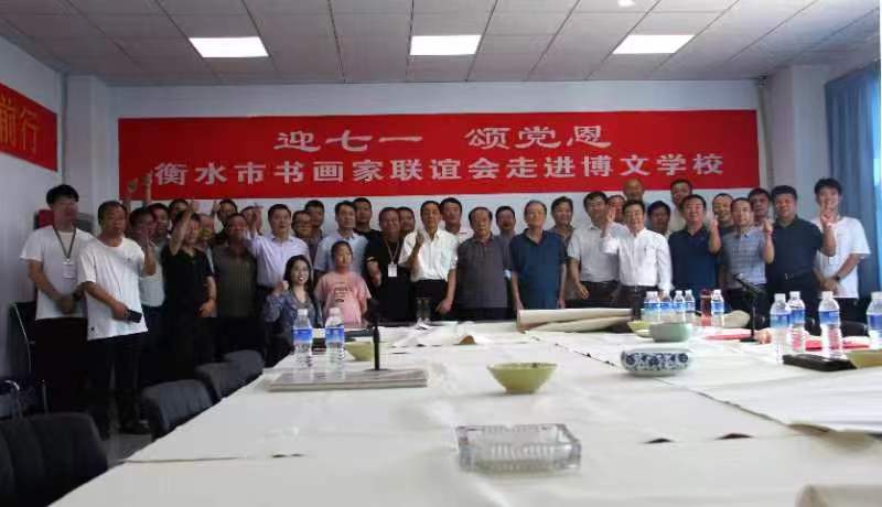 翰墨慶盛世,揮毫頌黨恩。6月27日,衡水市書畫暨港澳臺僑書畫家聯誼會書畫家們走進衡水博文中等職業學校,開展“迎‘七一’頌黨恩——衡水書畫家走進博文學校聯誼”活動,以書畫抒發對黨的忠誠熱愛之情。