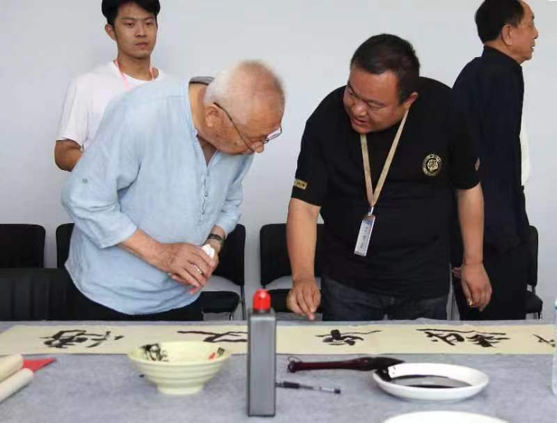 活動當天,酷暑難耐,但絲毫不影響藝術家們的創作熱情。大家歡聚一堂,飽蘸深情,揮毫潑墨。栩栩如生的松鼠、生動鮮活的花鳥、蒼勁有力的書法作品……現場大家互相切磋技藝,為學校創作并贈送書畫作品,共同譜寫對黨、對祖國、對人民的深厚感情。
