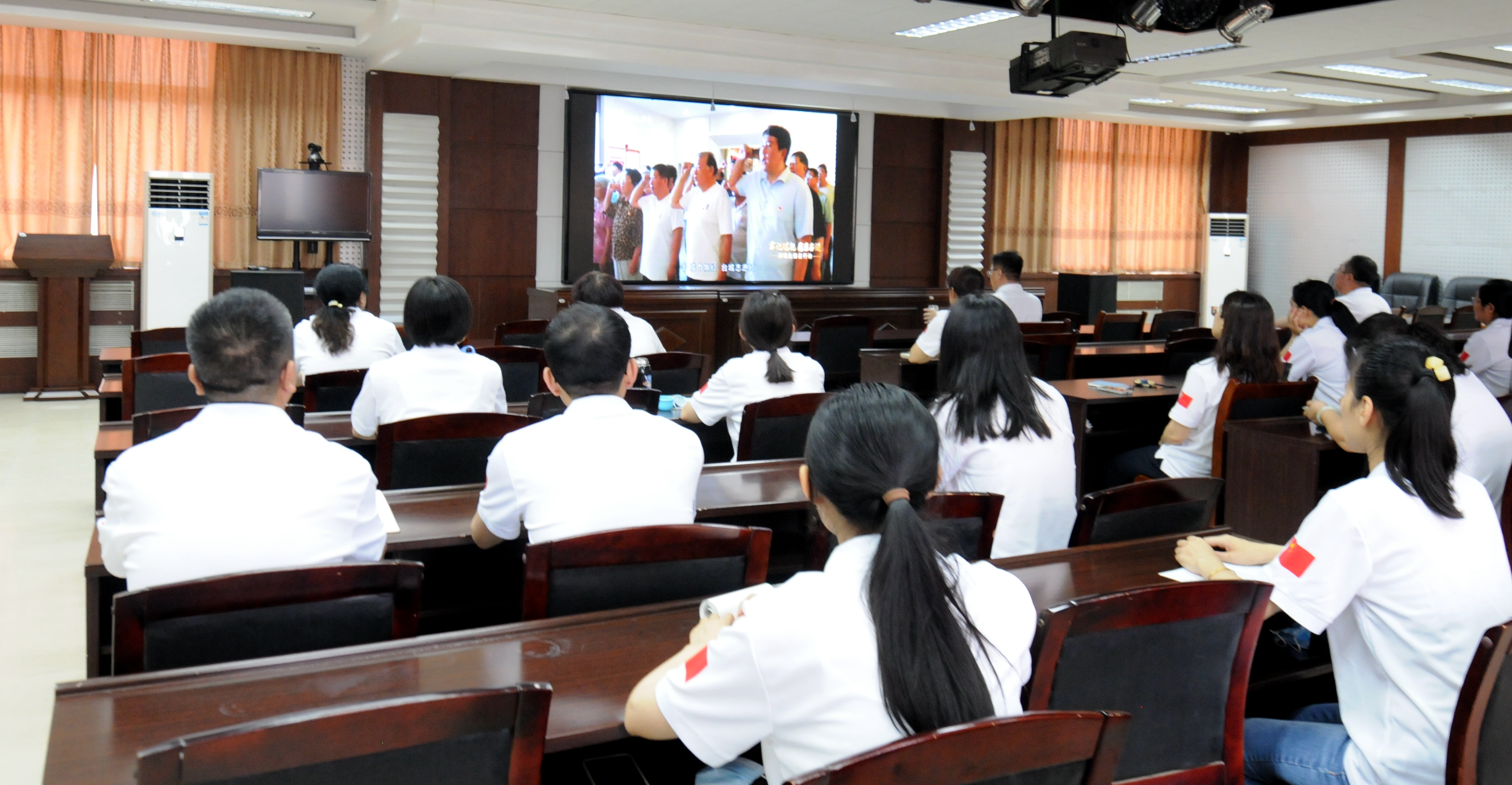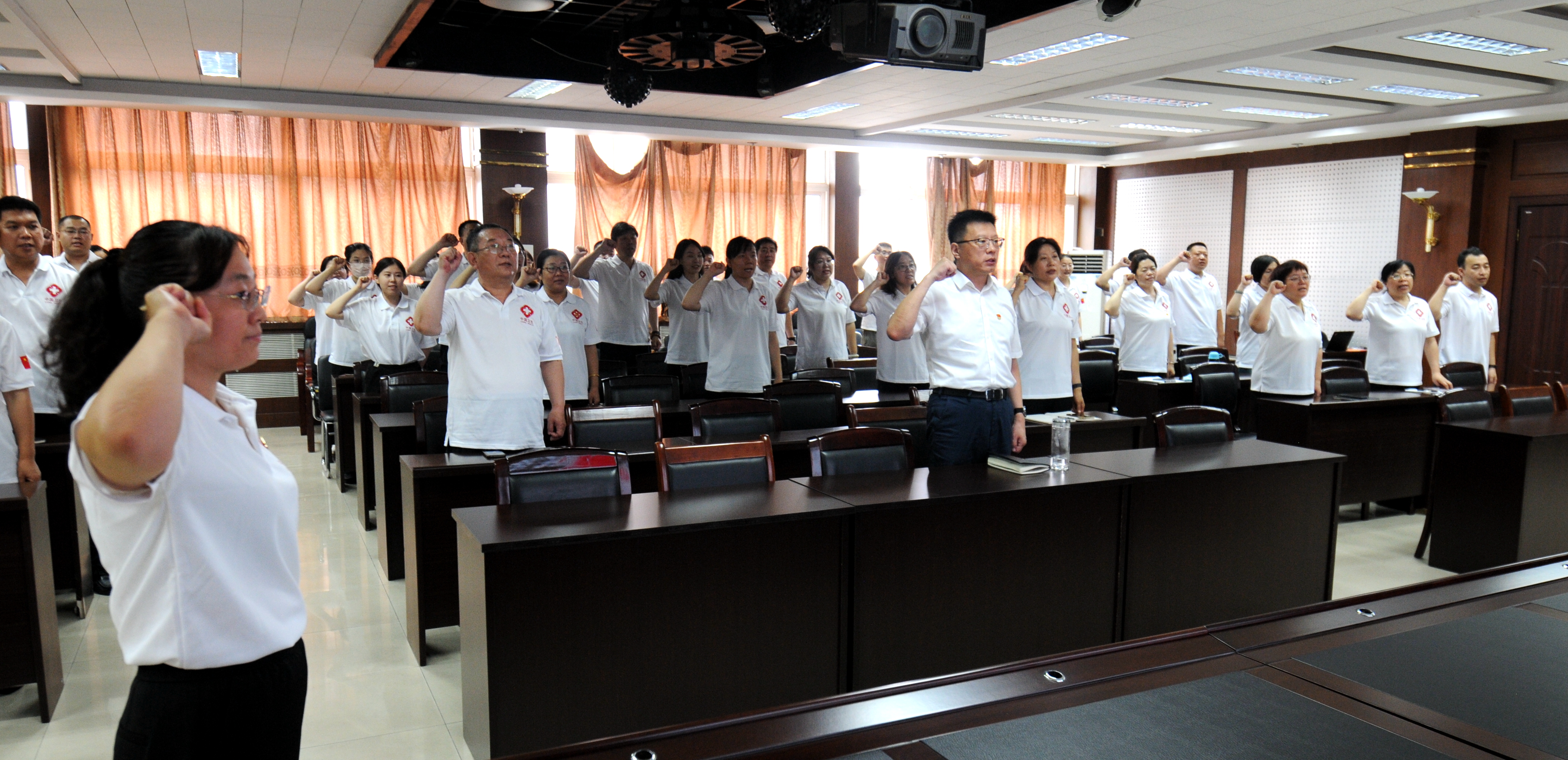 志愿服務活動結束后,該中心組織全體黨員在五樓會議室集中收聽收看了《“牢記囑托 感恩奮進--湖城先鋒在行動”衡水市集體主題黨日活動特別節目》。“我志愿加入中國共產黨,擁護黨的綱領,遵守黨的章程……”最后,全體黨員在黨旗下舉起右拳,重溫入黨誓詞。