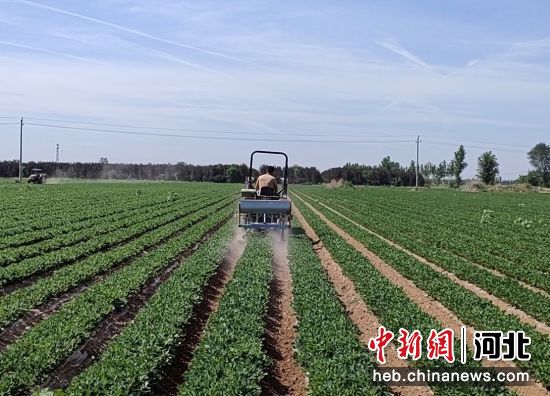 日前,走進(jìn)河北省衡水市冀州區(qū)北漳淮鄉(xiāng)南陳家莊村,一望無際的黃色麥茬地里,綠油油的花生葉子顯得格外搶眼,多輛播種施肥一體機(jī)作業(yè)的聲音由遠(yuǎn)及近,當(dāng)?shù)卮迕駛冋龑ㄉM(jìn)行施肥作業(yè),一派農(nóng)忙景象。