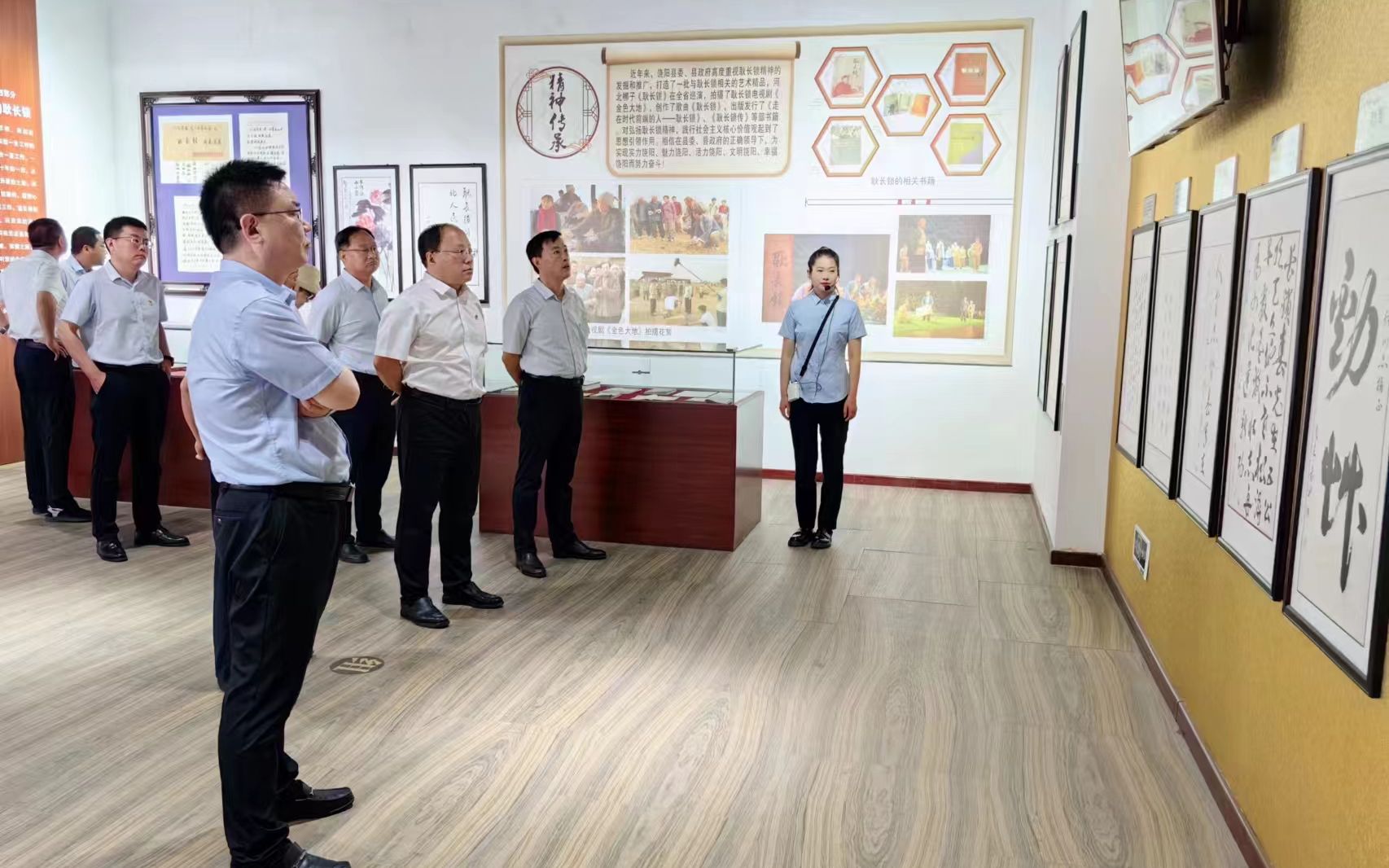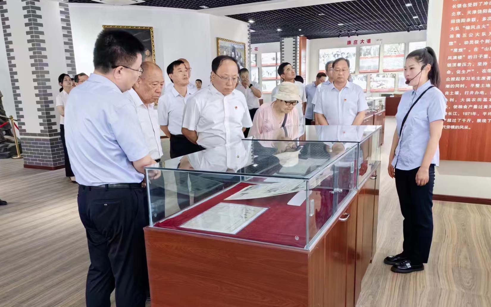 隨后,在講解員的帶領下,黨員們依次參觀了各展廳,全面了解館內珍藏的歷史文獻資料,認真聆聽全國勞模耿長鎖事跡。耿長鎖早年投身革命、多次不顧個人安危,掩護抗日戰士,為組織傳遞情報,最先響應黨的號召,創建“土地合作組”,帶領村民抓生產,被譽為華北平原上的一枝社會主義之花,耿長鎖個人被授予“全國勞動模范”稱號。每一幅歷史圖片,每一件實物,都見證了老一輩革命黨人對理想信念的崇高追求和實事求是的事業觀、廉潔奉公的高尚品格、貼近群眾的樸實作風。