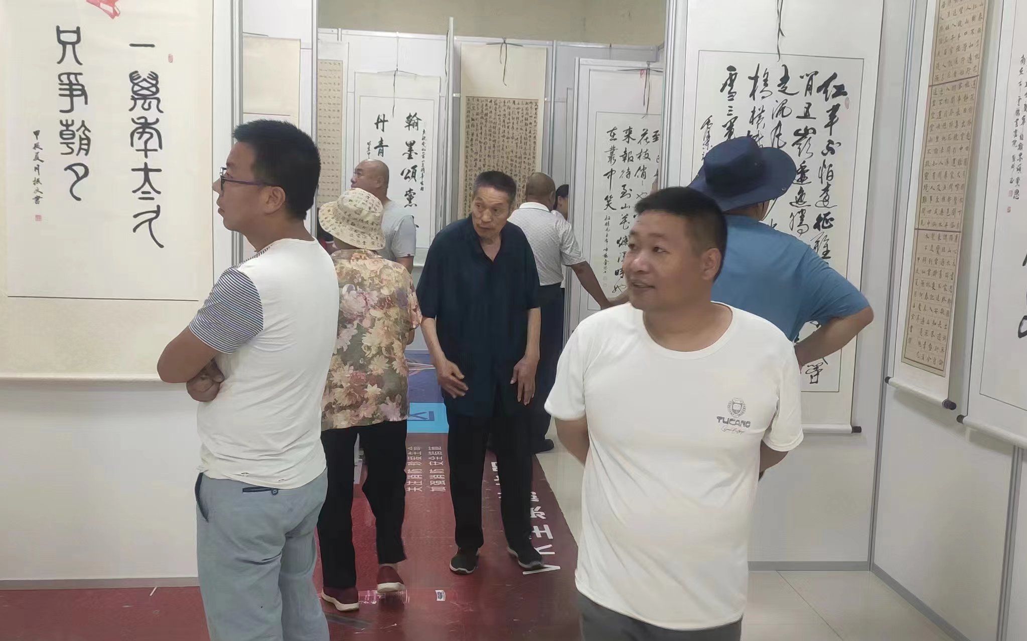 書畫愛好者們駐足欣賞書畫作品。張夢(mèng)娟 攝
