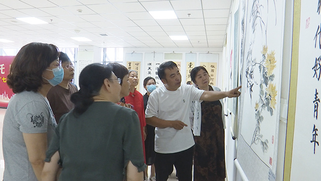 書畫愛好者們一起探討作品。張夢(mèng)娟 攝