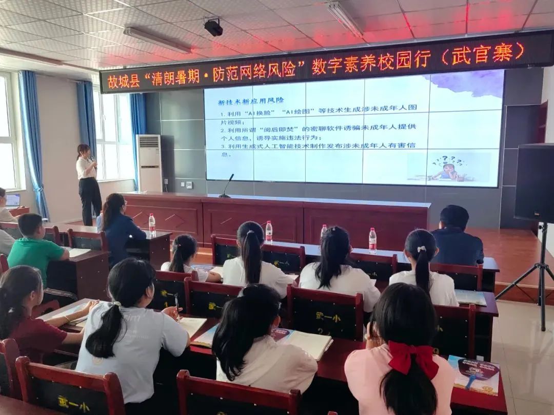 為深入推進“清朗·2023年暑期未成年人網絡環境整治”專項行動,幫助未成年人提升數字素養與技能、有效防范各類網絡風險,在暑期來臨之際,7月3日,故城縣委網信辦在武官寨鎮第一小學開展了“清朗暑期·防范網絡風險”數字素養校園行活動。