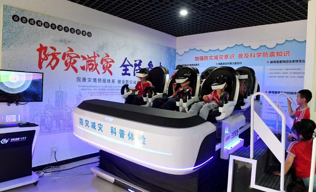 小朋友們體驗VR災害模擬。崔賢飛 攝