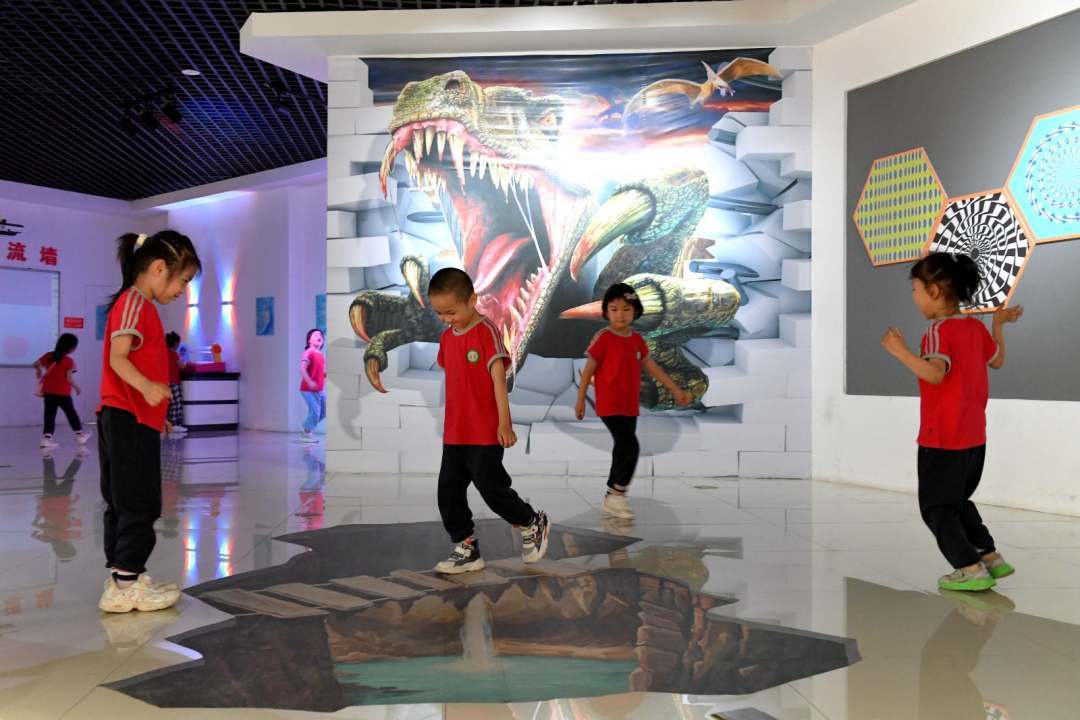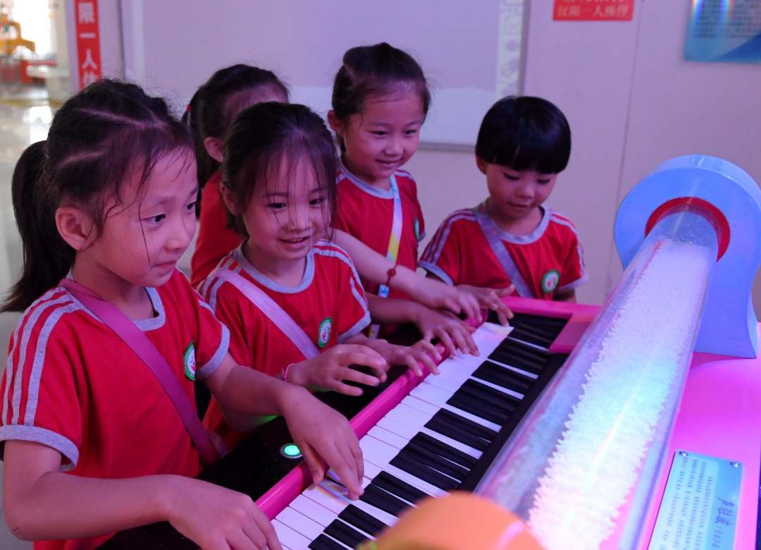 小朋友們進行體驗和操作。崔賢飛 攝